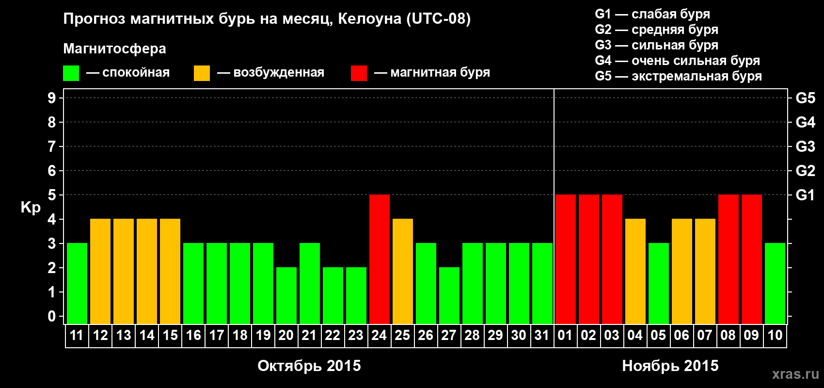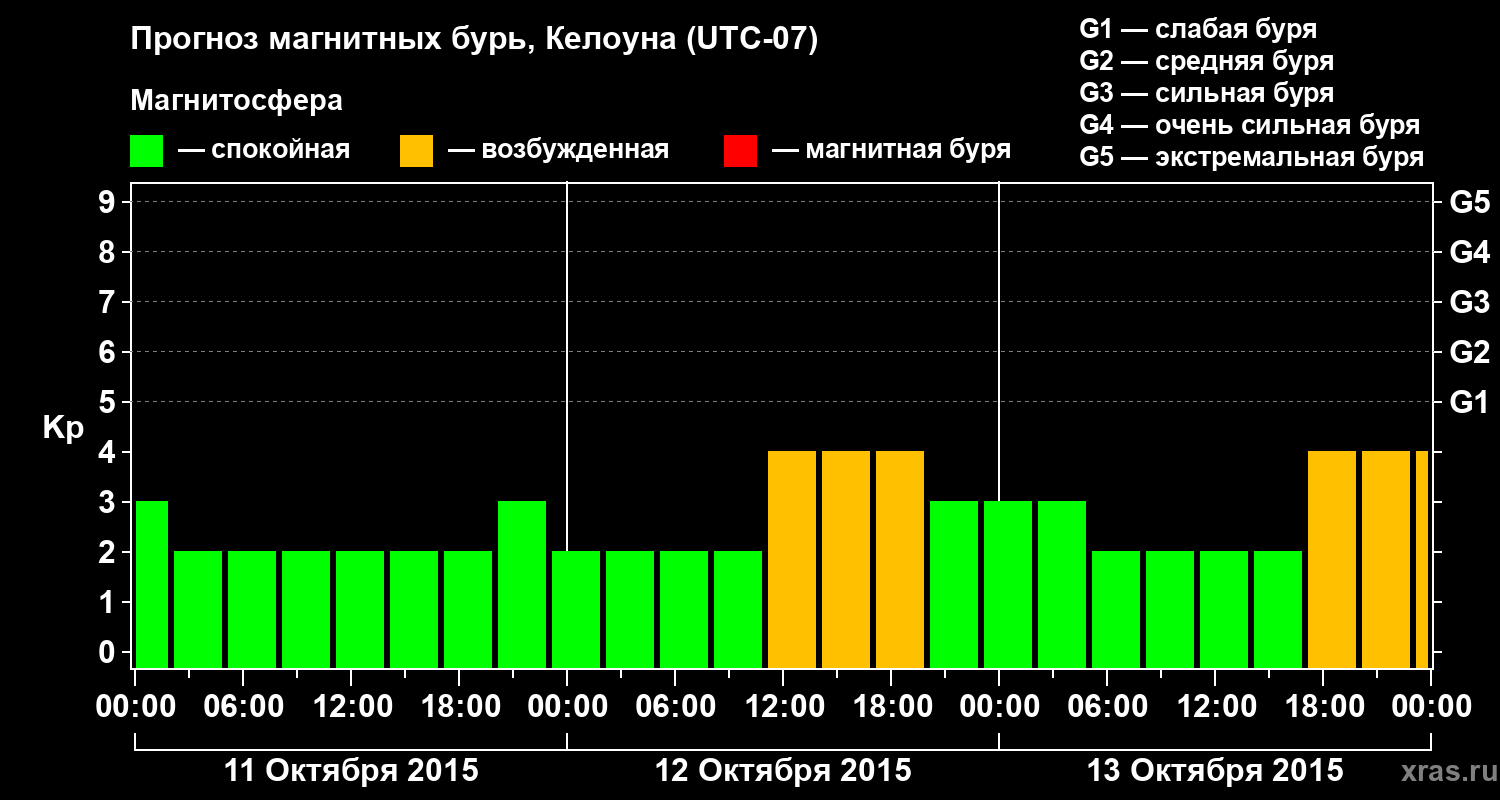 Прогноз магнитных бурь в Келоуне — 11 октября 2015 года