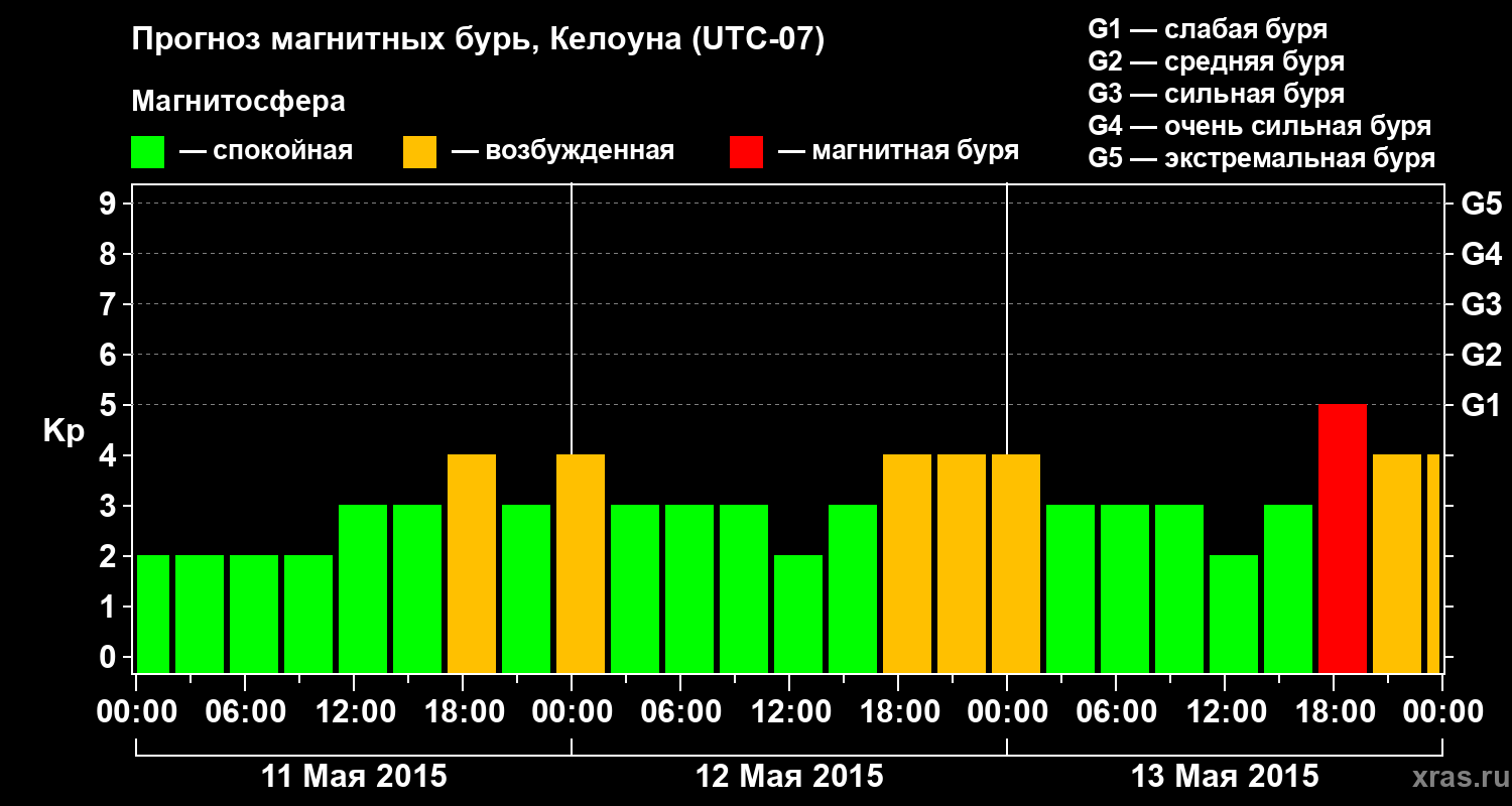 Прогноз магнитных бурь в Келоуне на 11 мая 2015 года