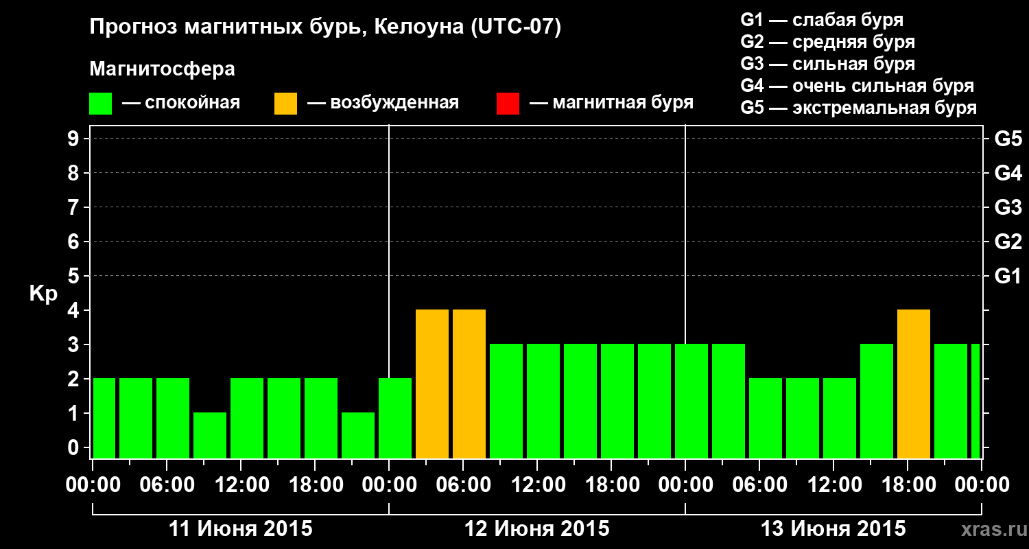 Прогноз магнитных бурь в Келоуне на 11 июня 2015 года