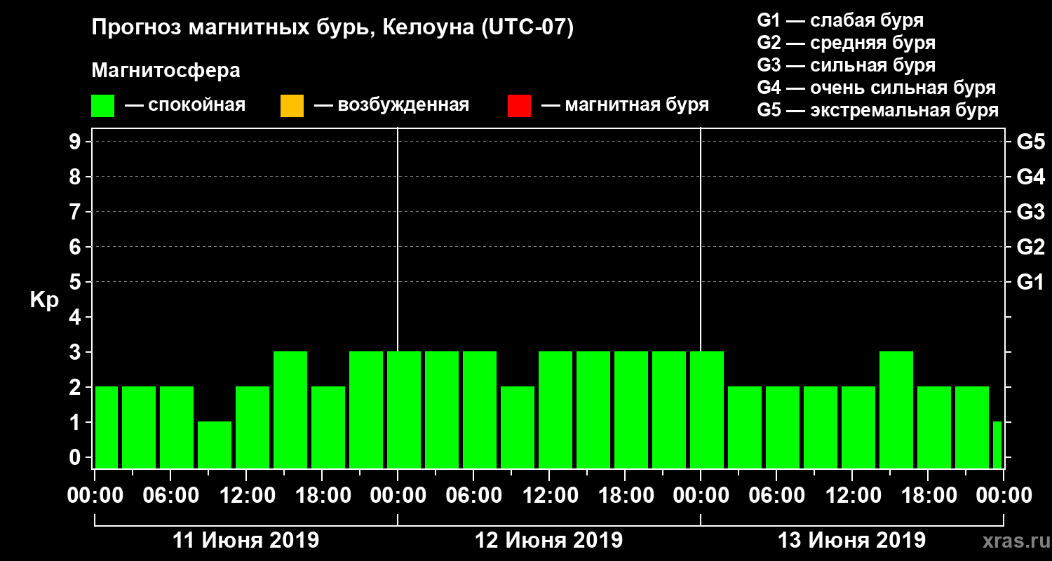 Прогноз магнитных бурь в Келоуне — 11 июня 2019 года