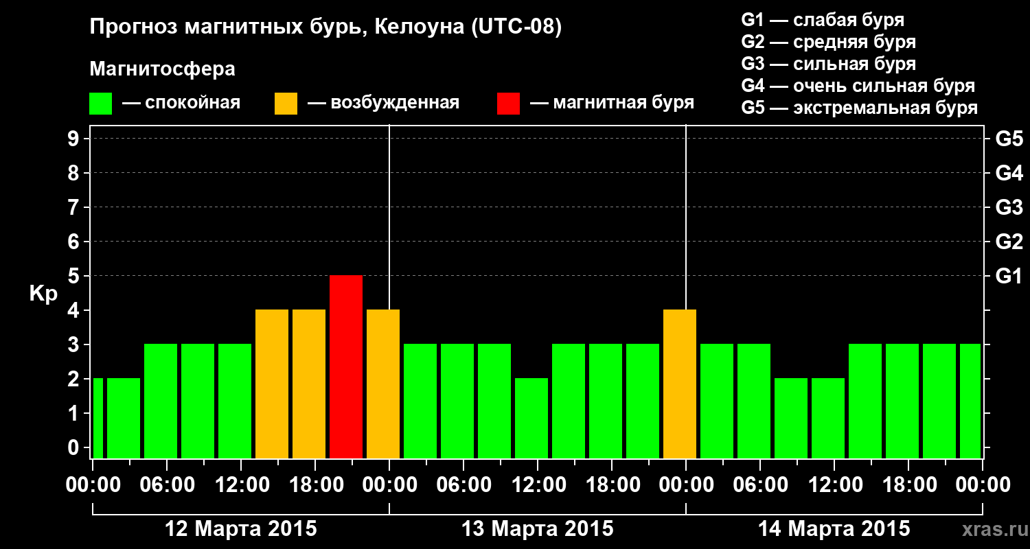 Прогноз магнитных бурь в Келоуне на 12 марта 2015 года