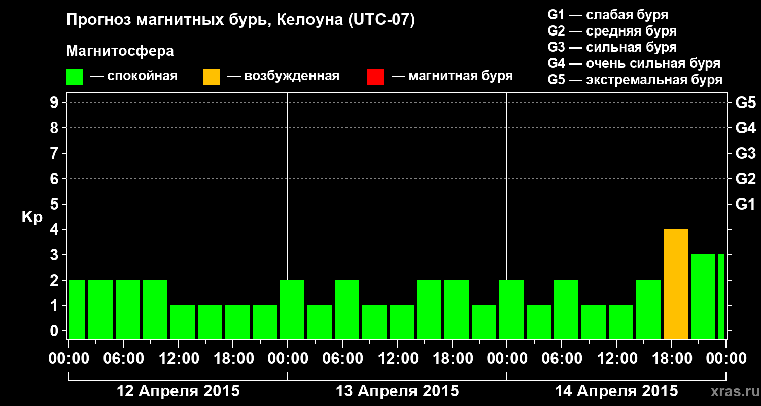 Прогноз магнитных бурь в Келоуне на 12 апреля 2015 года