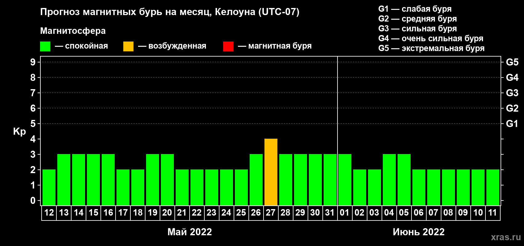 Прогноз магнитных бурь в Келоуне на 12 мая 2022 года