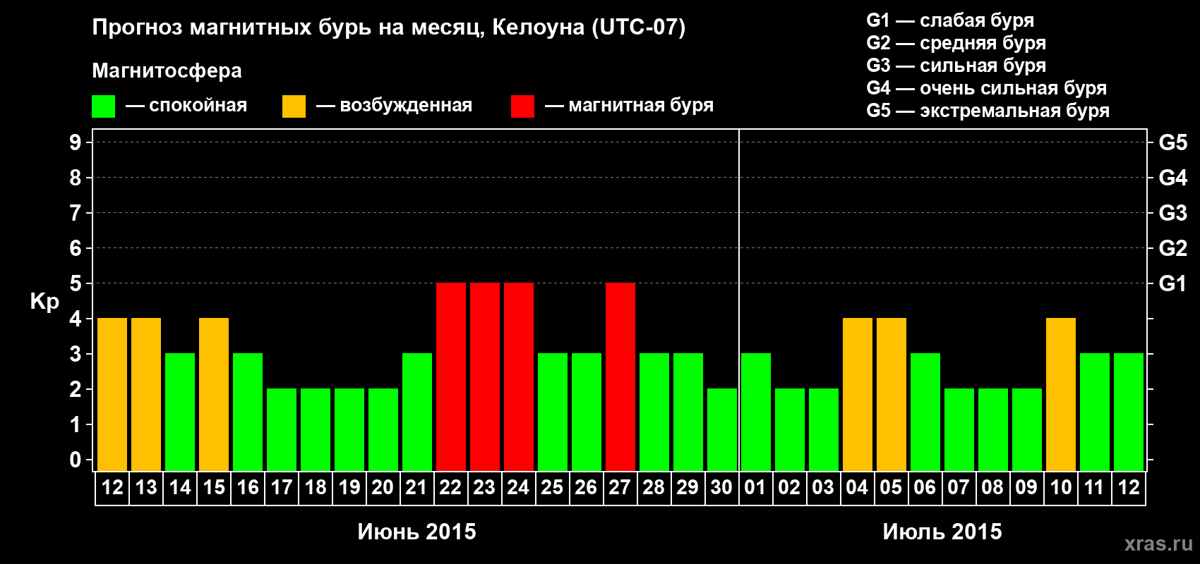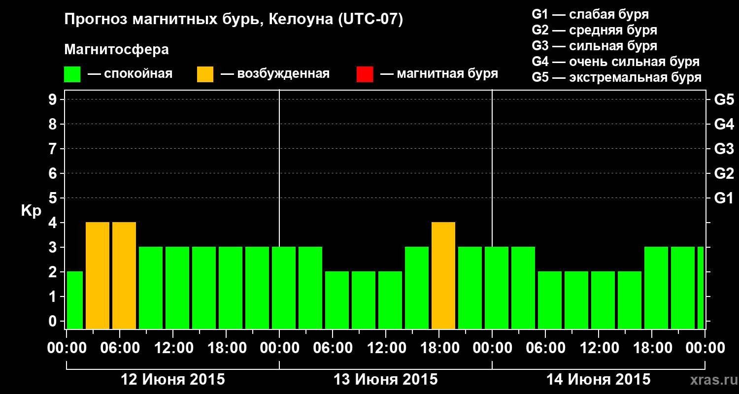 Прогноз магнитных бурь в Келоуне на 12 июня 2015 года