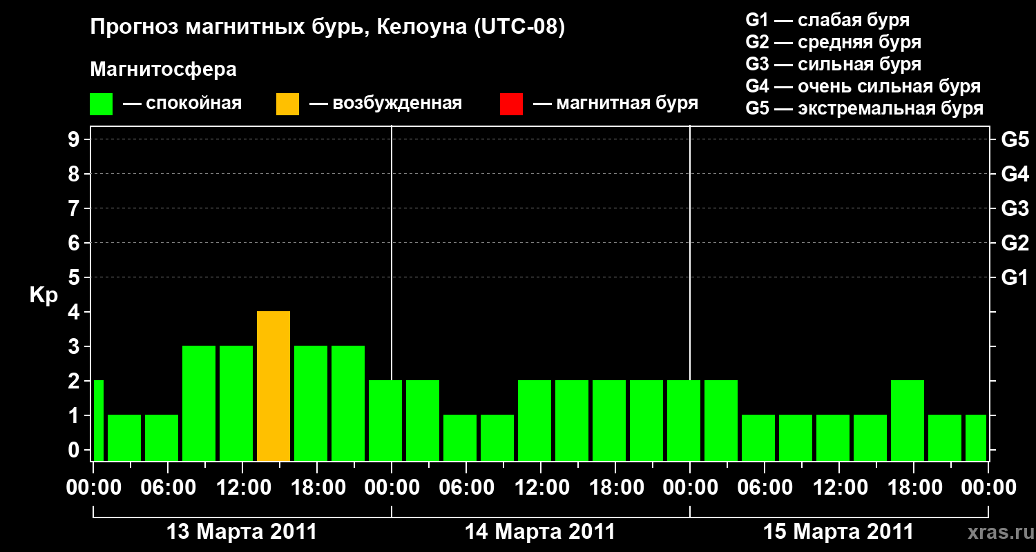 Прогноз магнитных бурь в Келоуне — 13 марта 2011 года