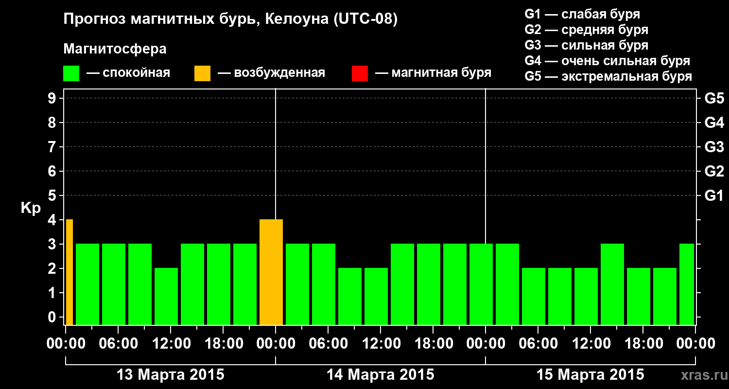 Прогноз магнитных бурь в Келоуне на 13 марта 2015 года