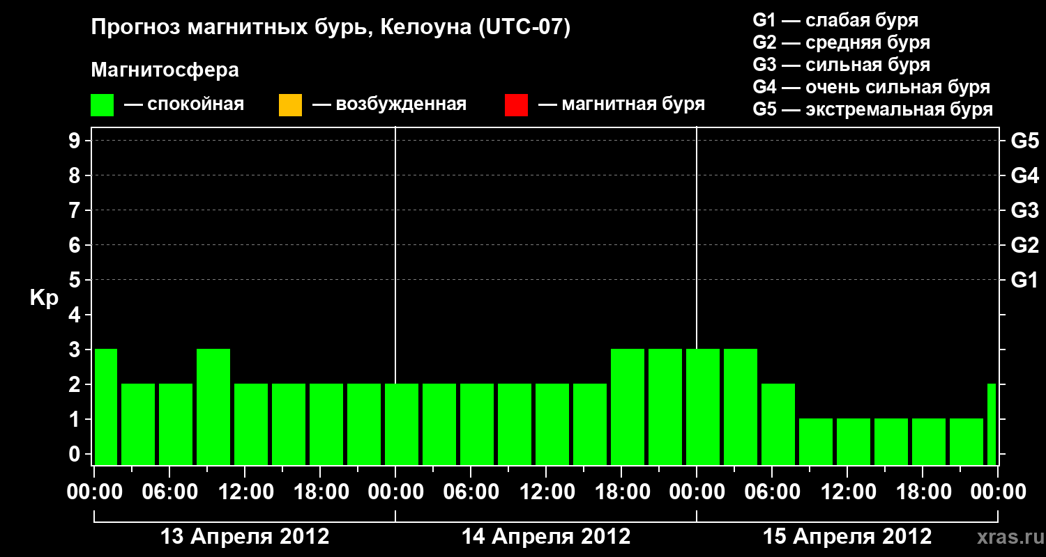 Прогноз магнитных бурь в Келоуне на 13 апреля 2012 года