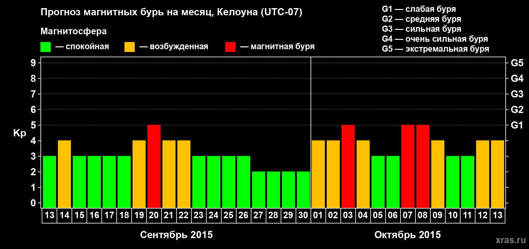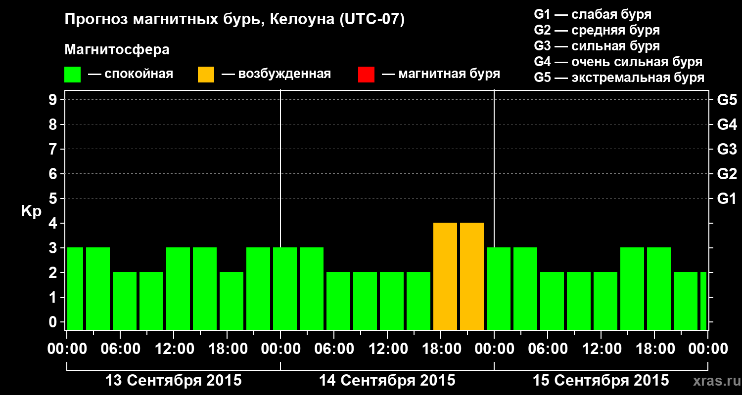 Прогноз магнитных бурь в Келоуне на 13 сентября 2015 года