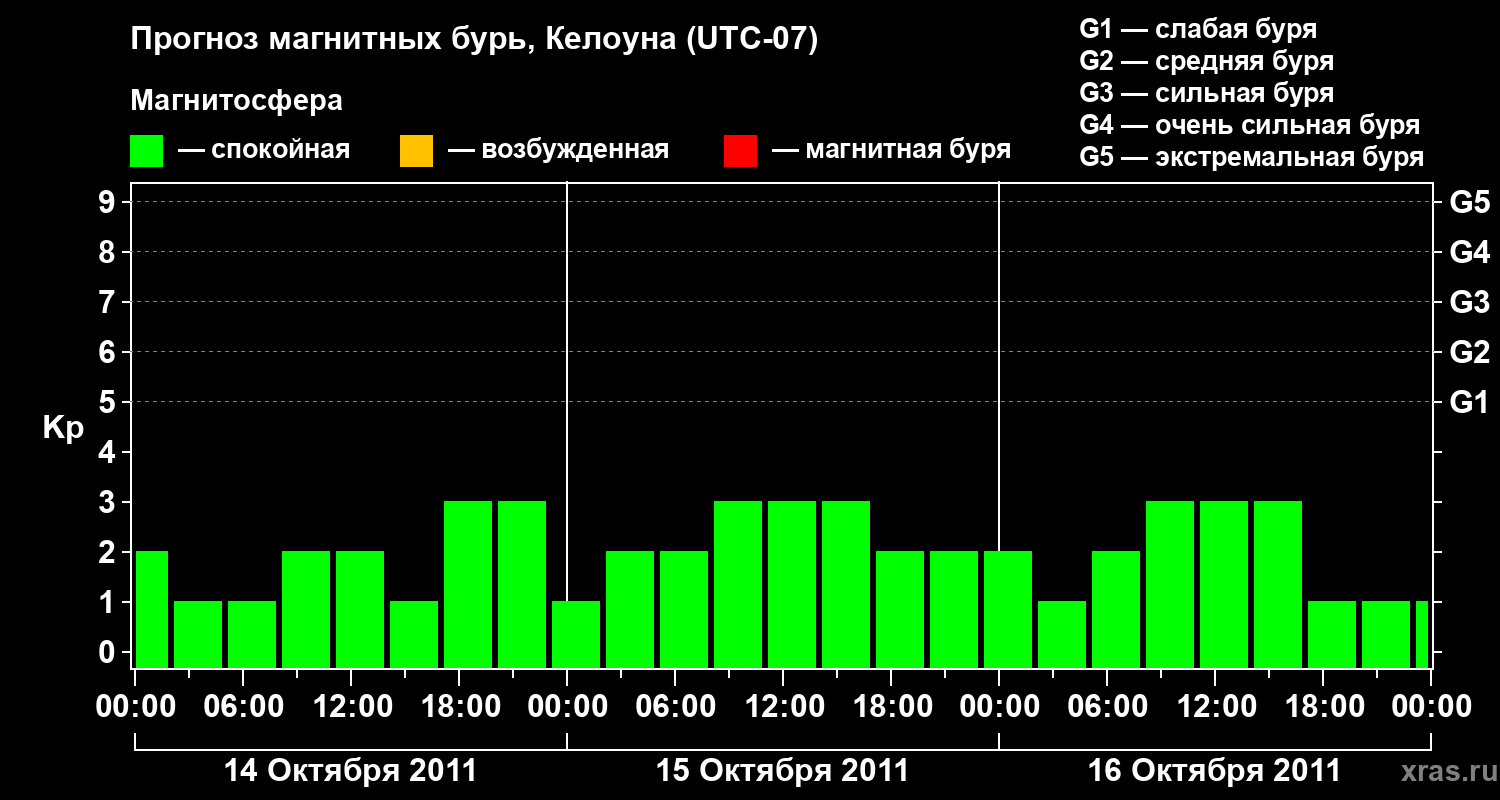 Прогноз магнитных бурь в Келоуне — 14 октября 2011 года