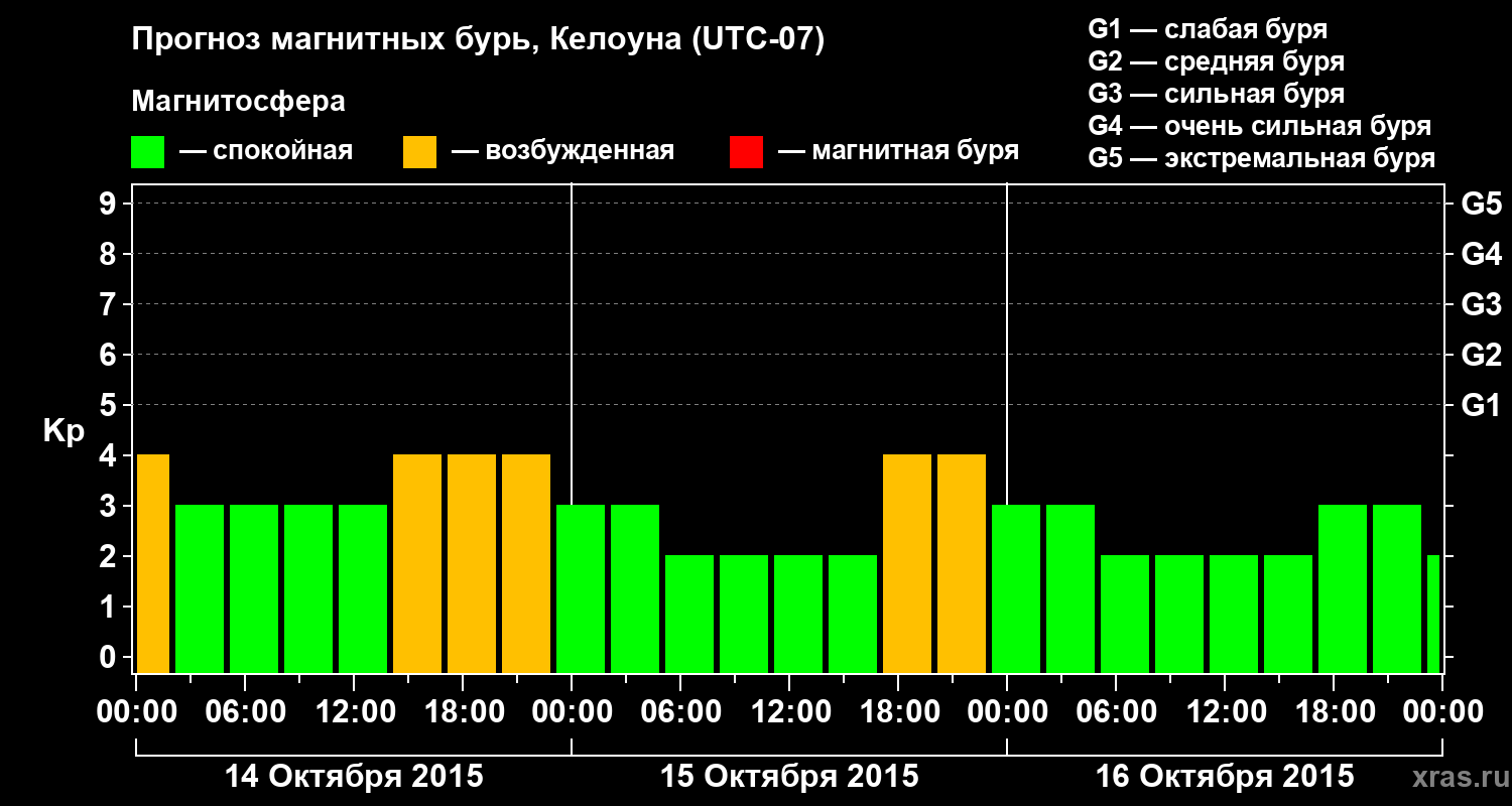 Прогноз магнитных бурь в Келоуне на 14 октября 2015 года