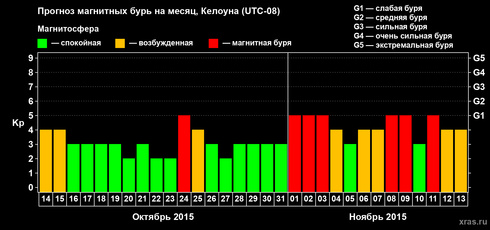Прогноз магнитных бурь в Келоуне — 14 октября 2015 года