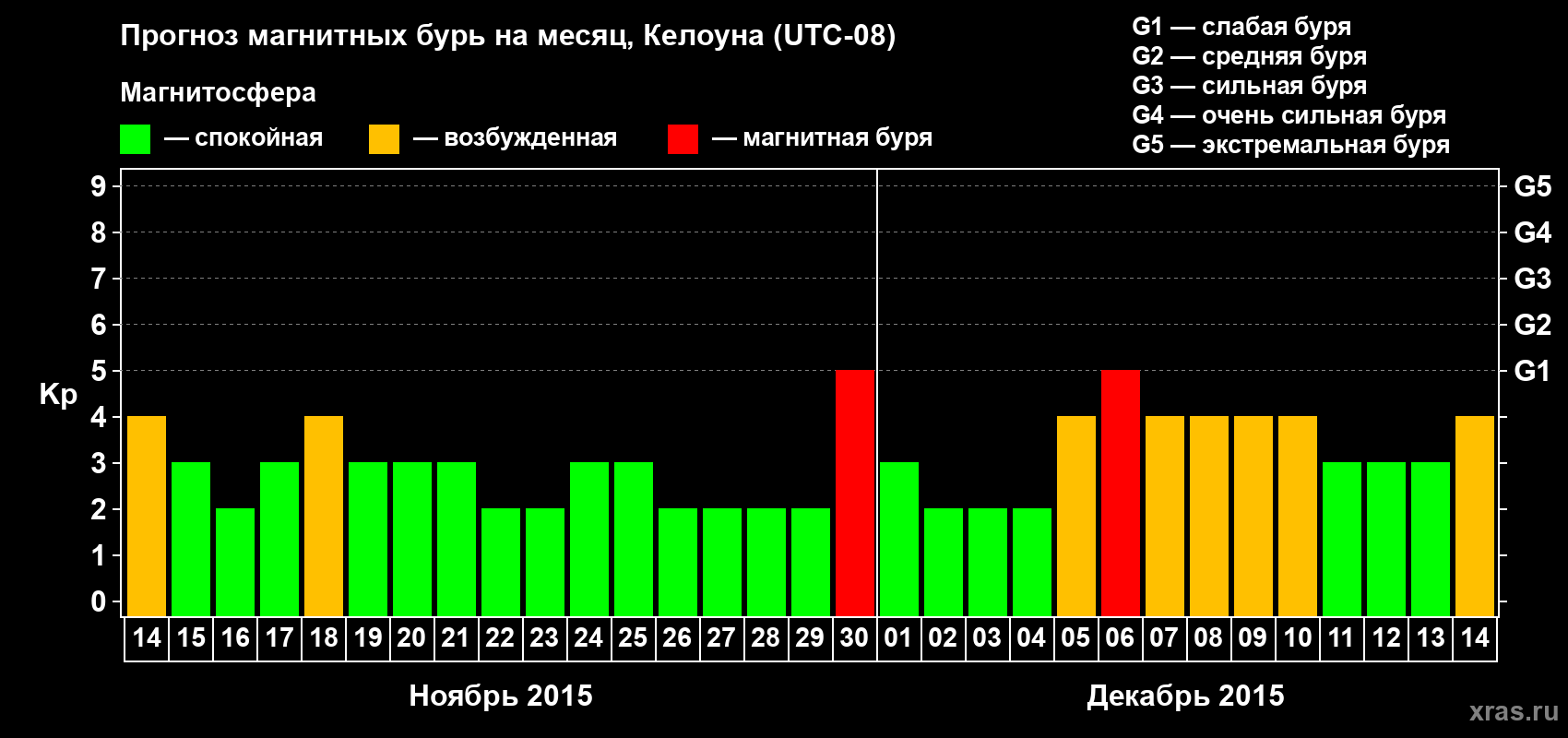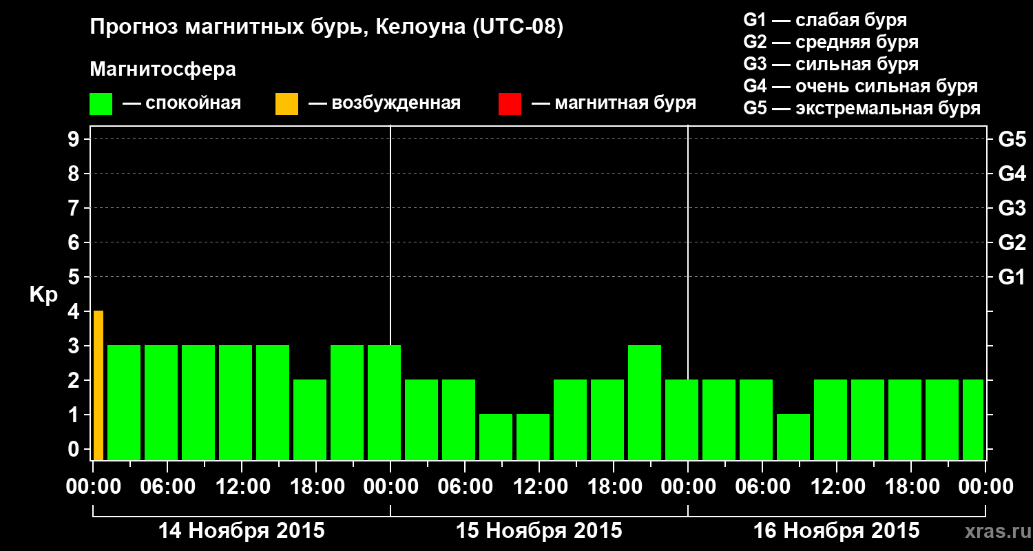 Прогноз магнитных бурь в Келоуне — 14 ноября 2015 года