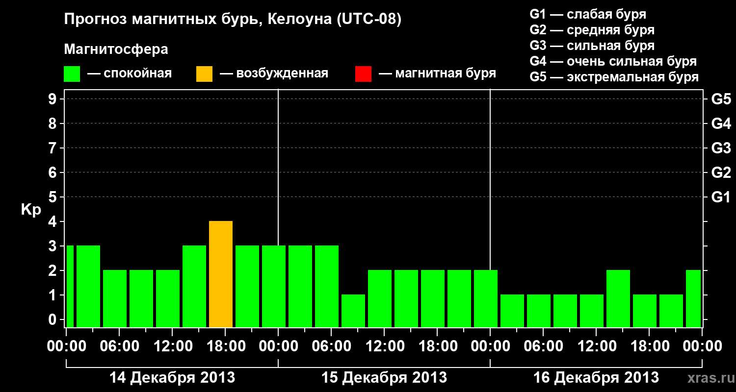 Прогноз магнитных бурь в Келоуне на 14 декабря 2013 года