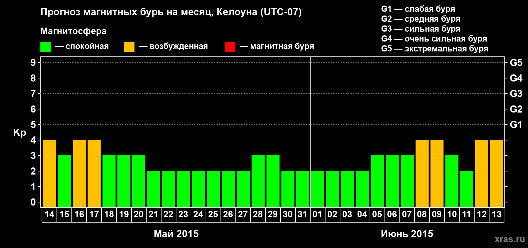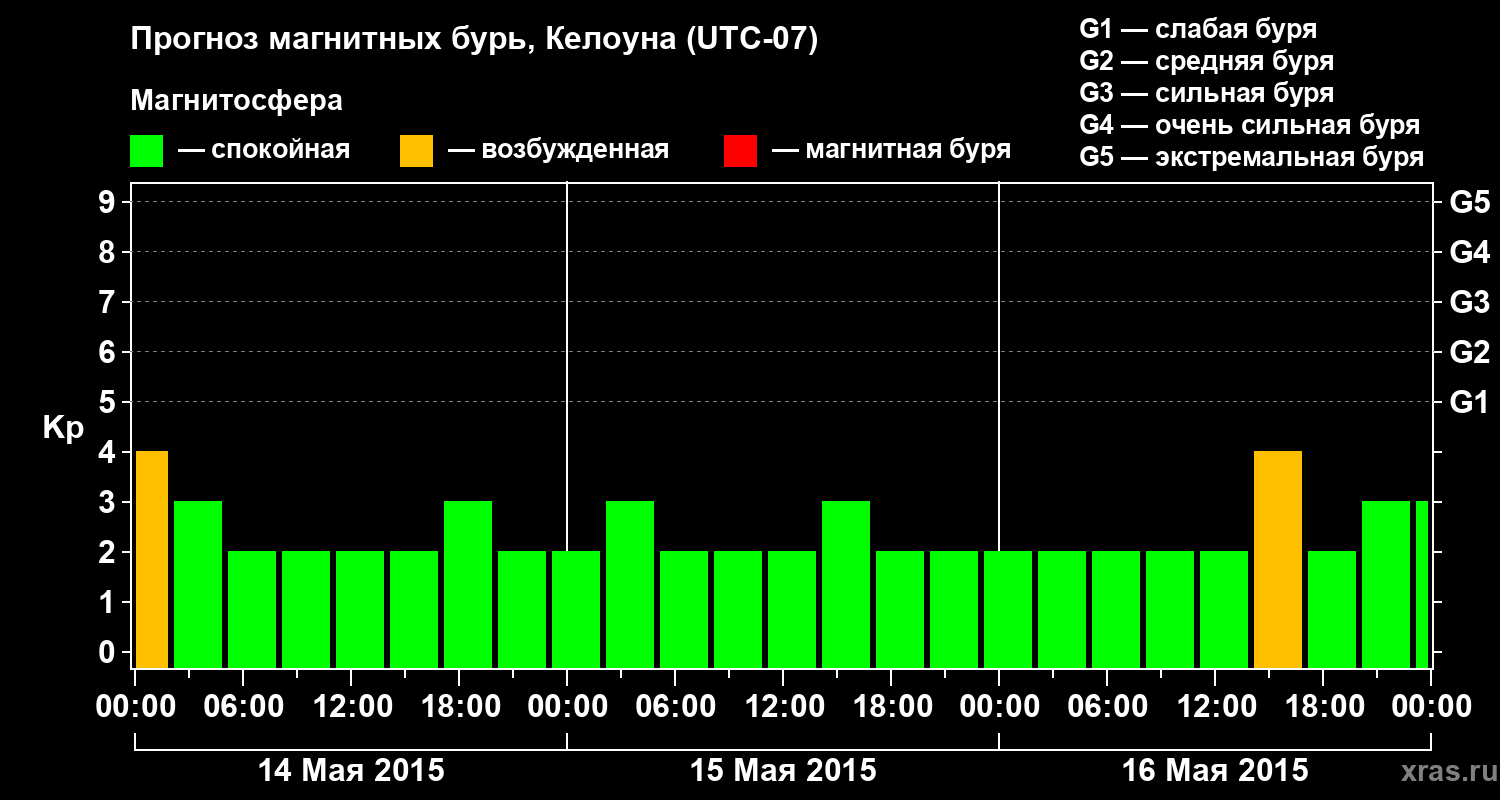 Прогноз магнитных бурь в Келоуне — 14 мая 2015 года