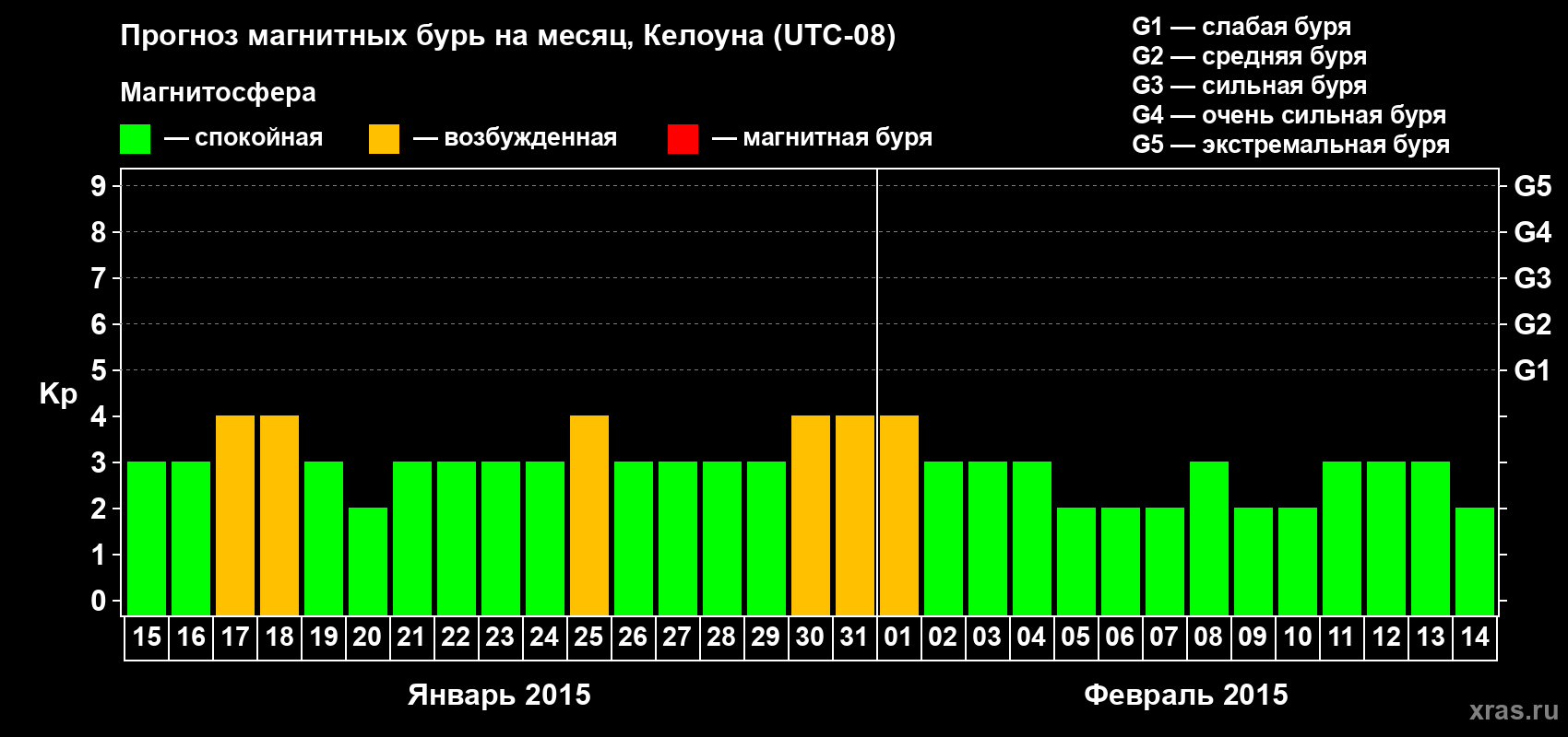 Прогноз магнитных бурь в Келоуне на 15 января 2015 года