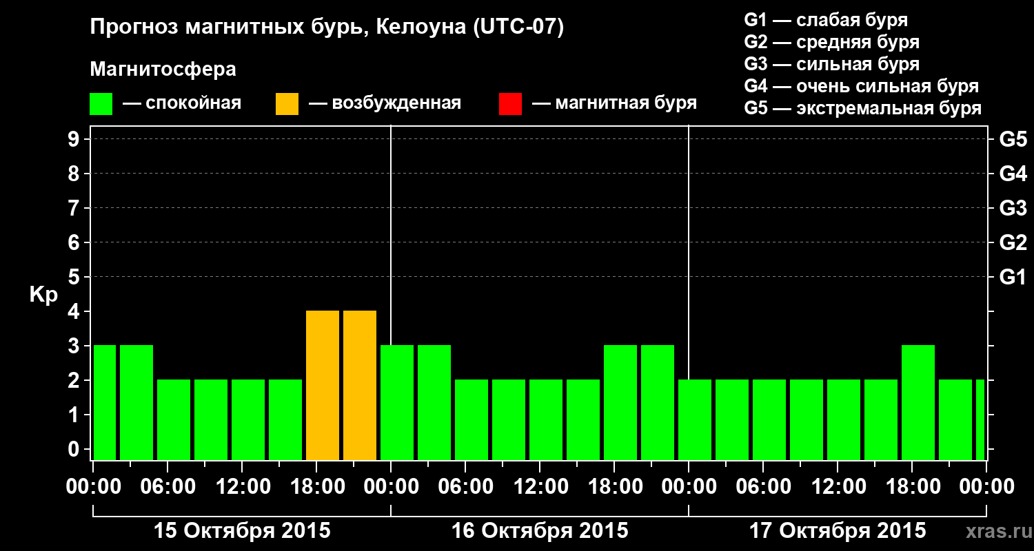 Прогноз магнитных бурь в Келоуне на 15 октября 2015 года