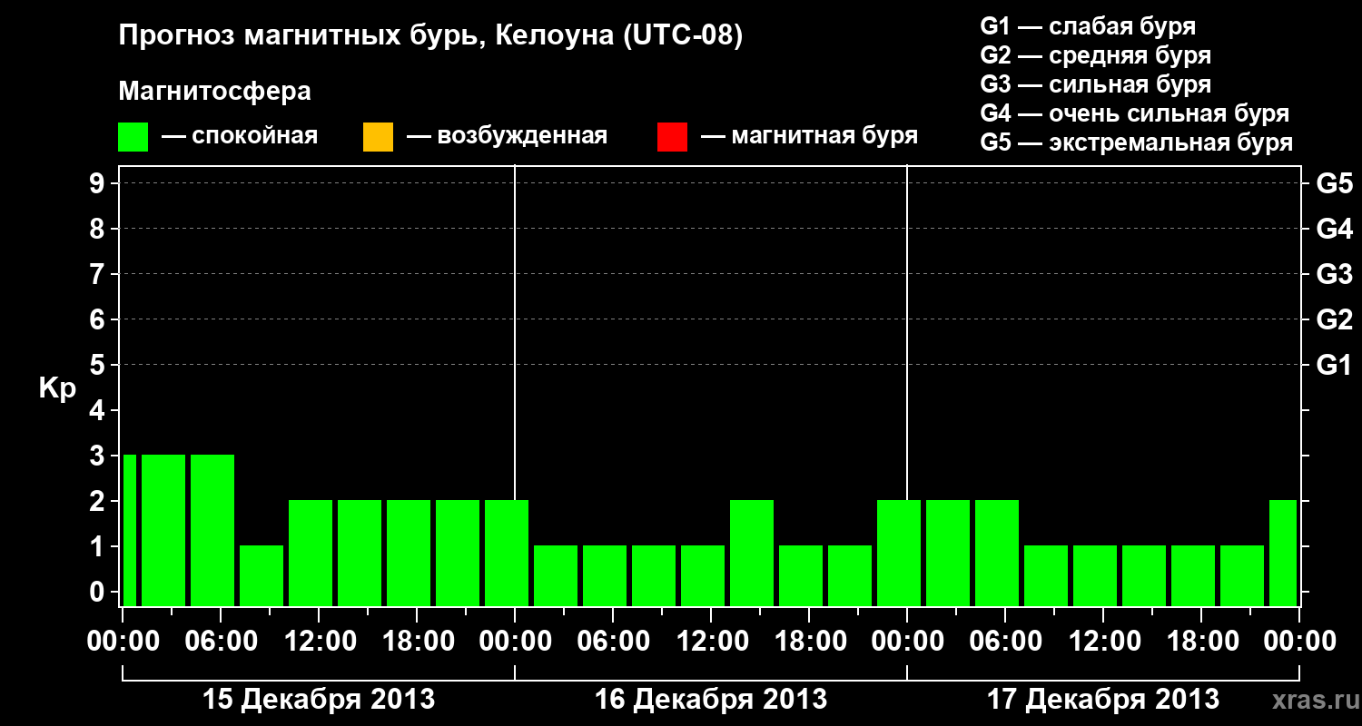 Прогноз магнитных бурь в Келоуне на 15 декабря 2013 года