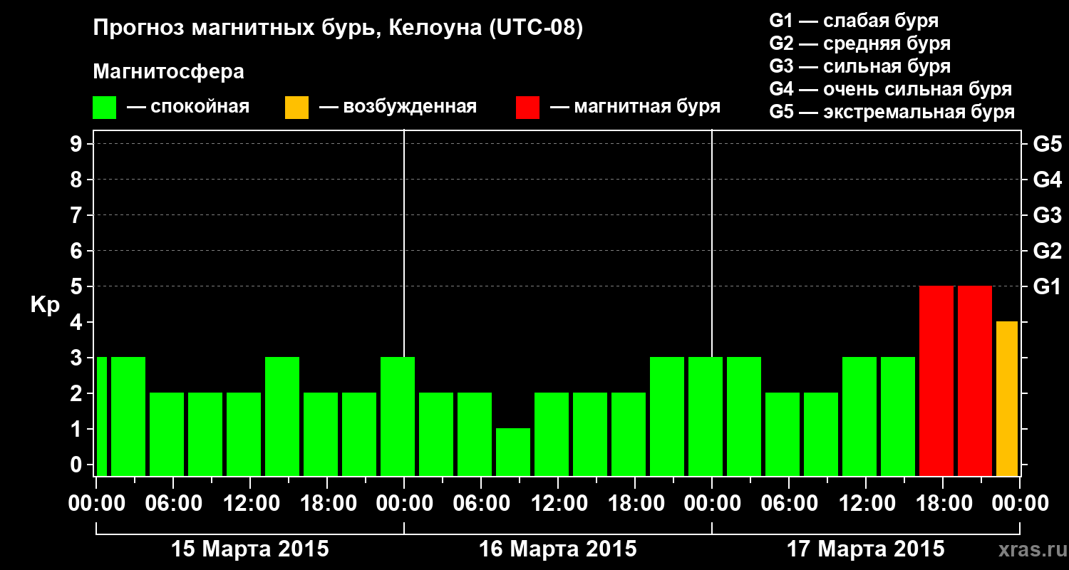 Прогноз магнитных бурь в Келоуне на 15 марта 2015 года