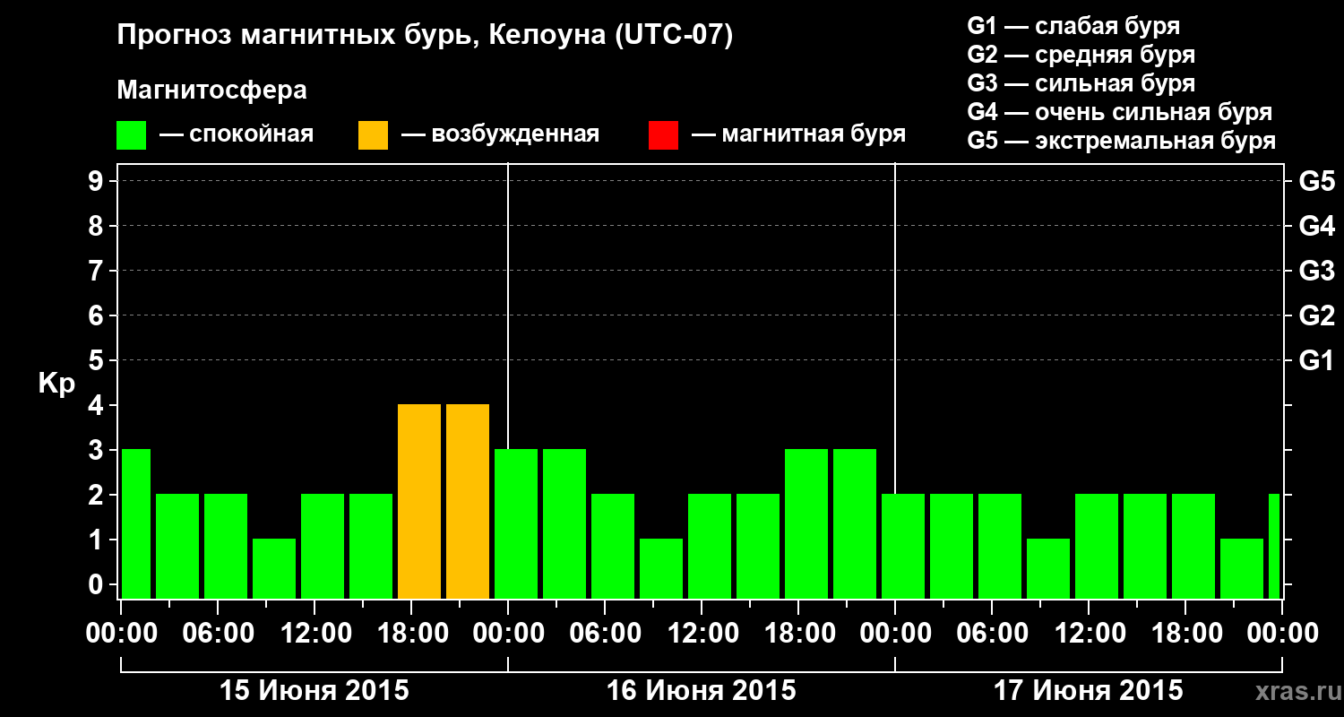 Прогноз магнитных бурь в Келоуне на 15 июня 2015 года
