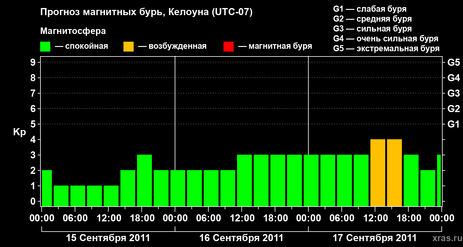 Прогноз магнитных бурь в Келоуне — 15 сентября 2011 года