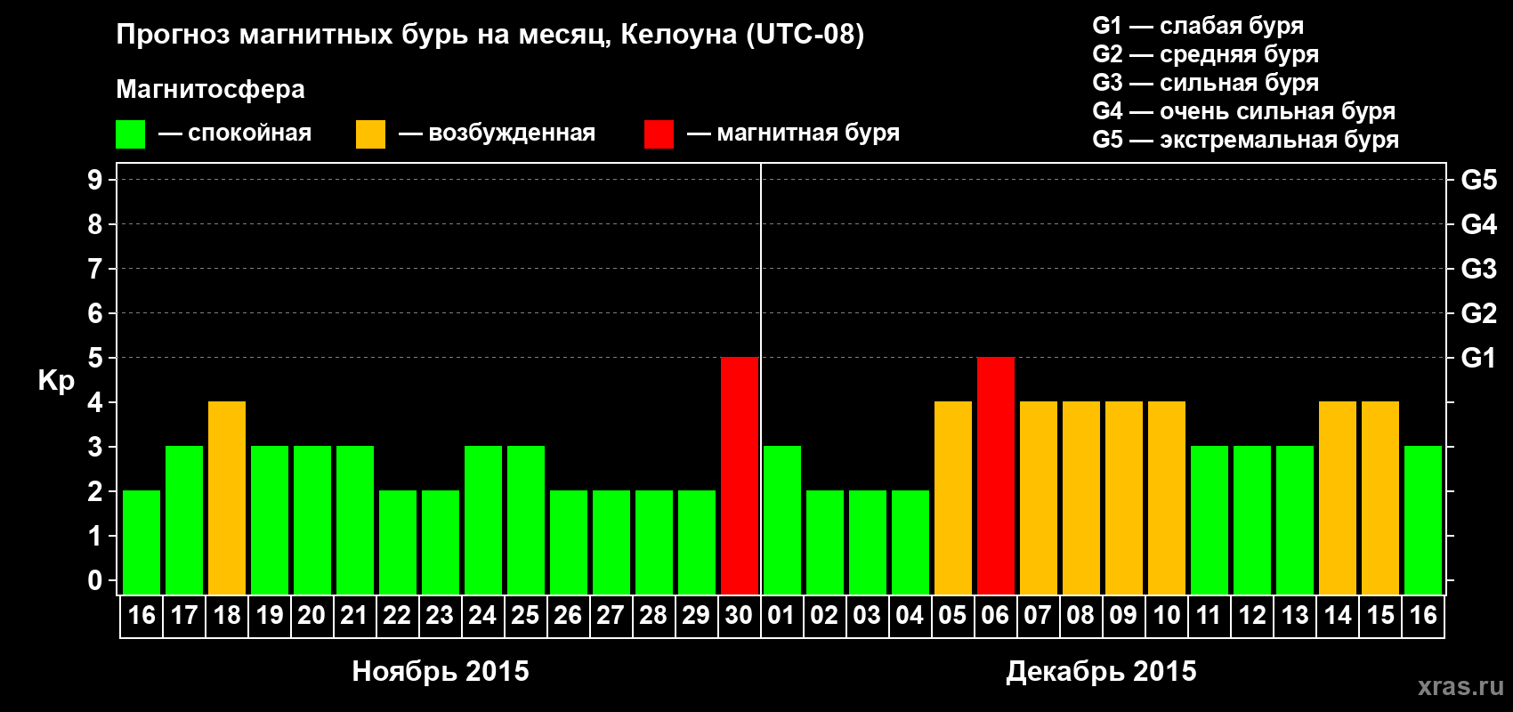Прогноз магнитных бурь в Келоуне — 16 ноября 2015 года