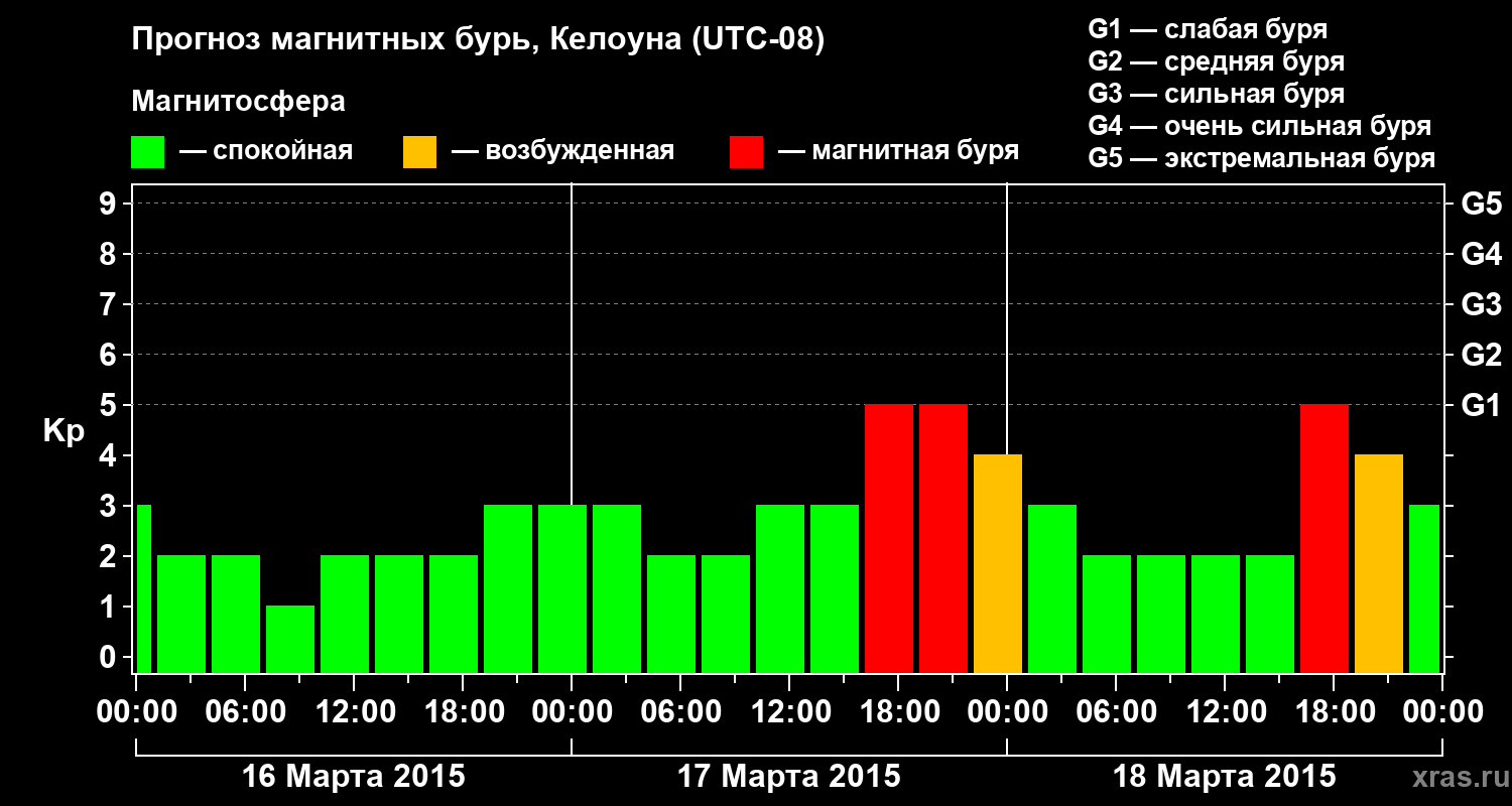 Прогноз магнитных бурь в Келоуне на 16 марта 2015 года
