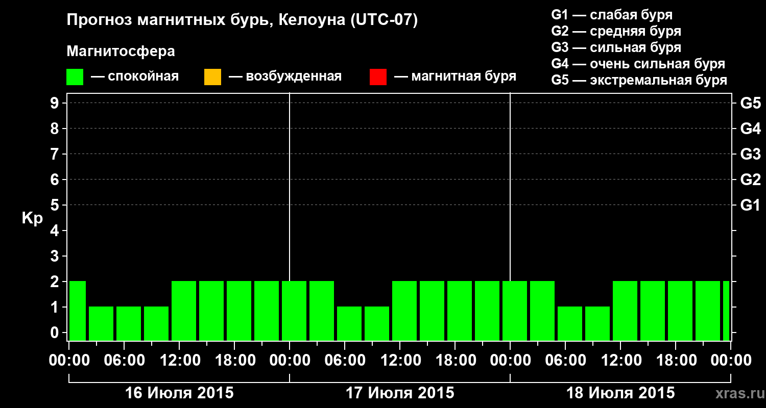Прогноз магнитных бурь в Келоуне — 16 июля 2015 года