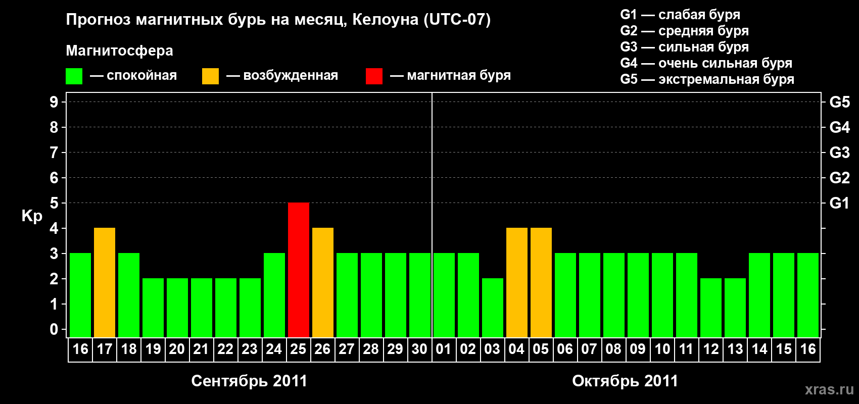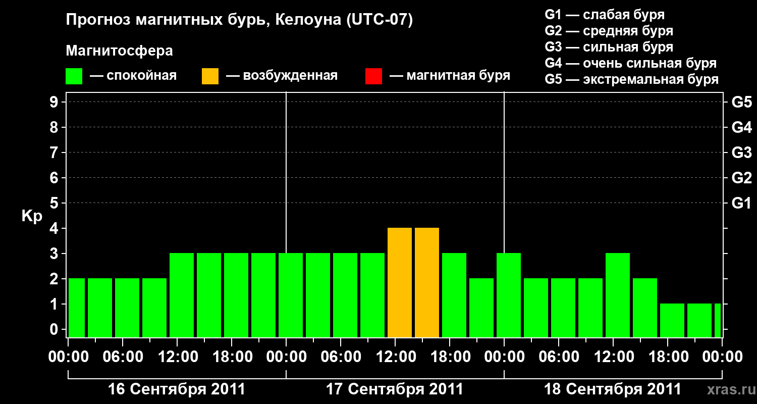 Прогноз магнитных бурь в Келоуне — 16 сентября 2011 года