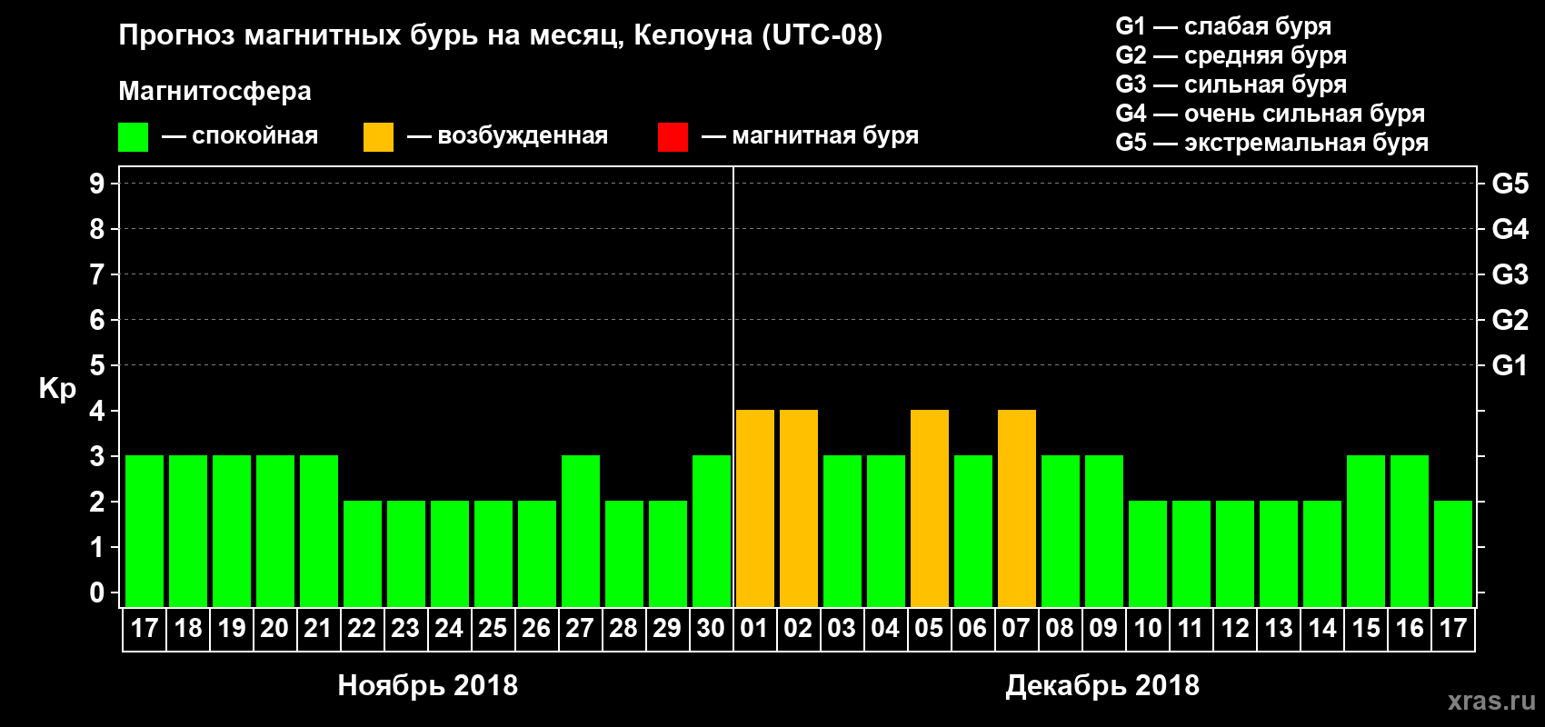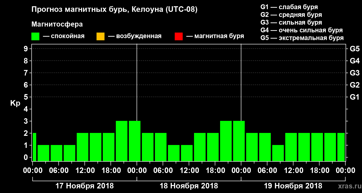 Прогноз магнитных бурь в Келоуне на 17 ноября 2018 года