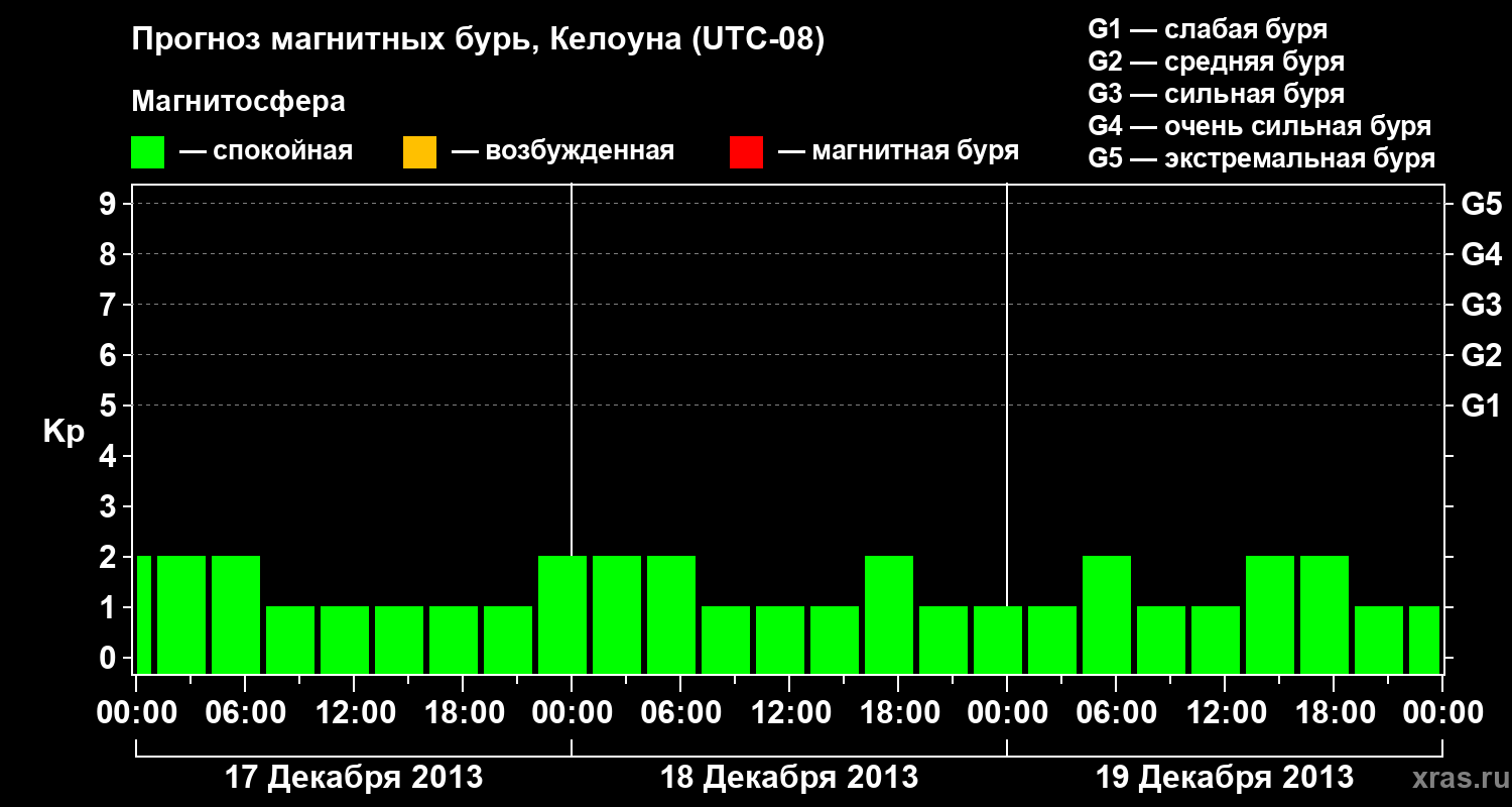 Прогноз магнитных бурь в Келоуне — 17 декабря 2013 года