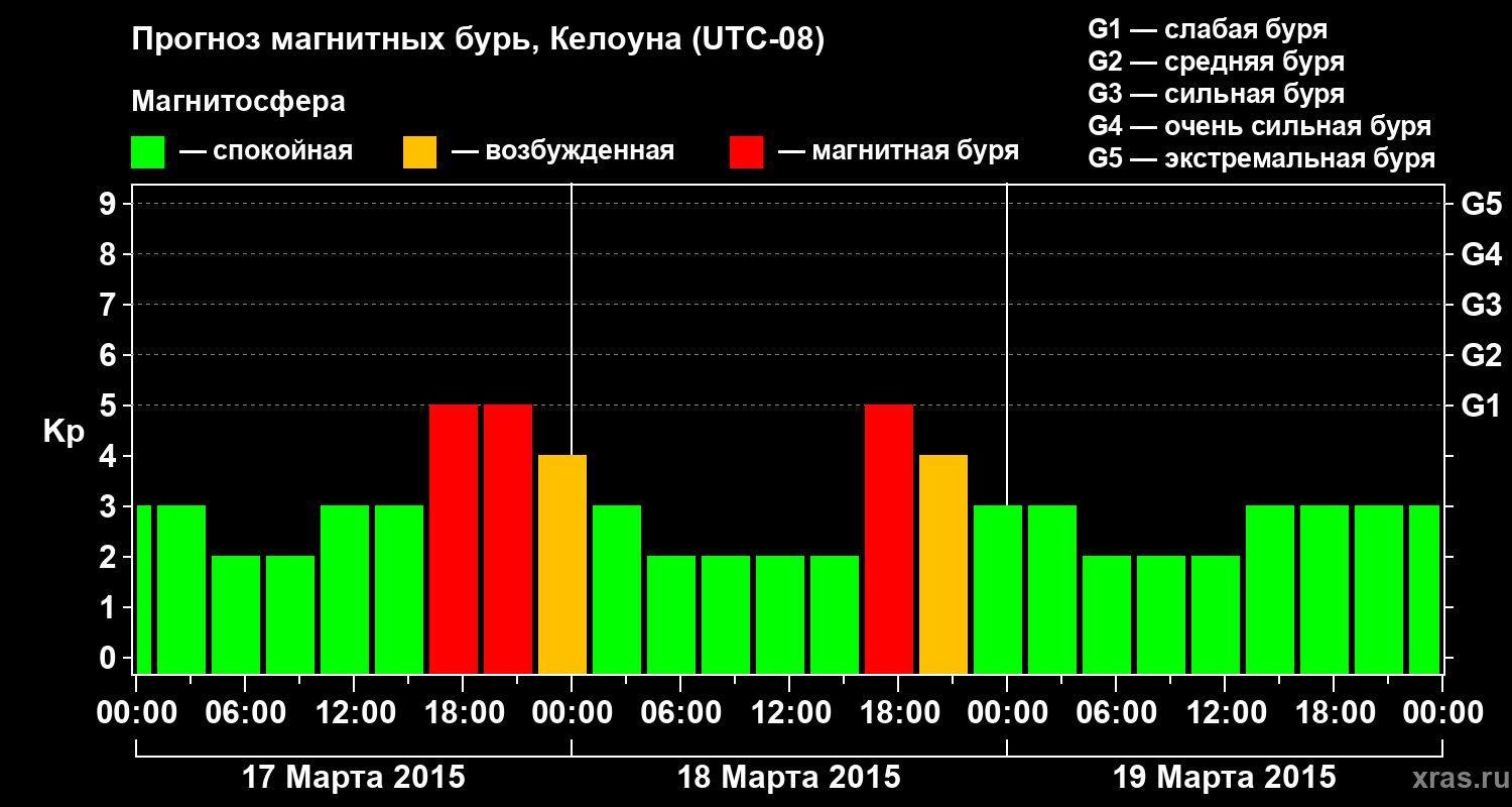 Прогноз магнитных бурь в Келоуне на 17 марта 2015 года