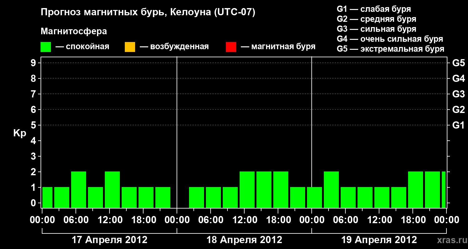 Прогноз магнитных бурь в Келоуне на 17 апреля 2012 года