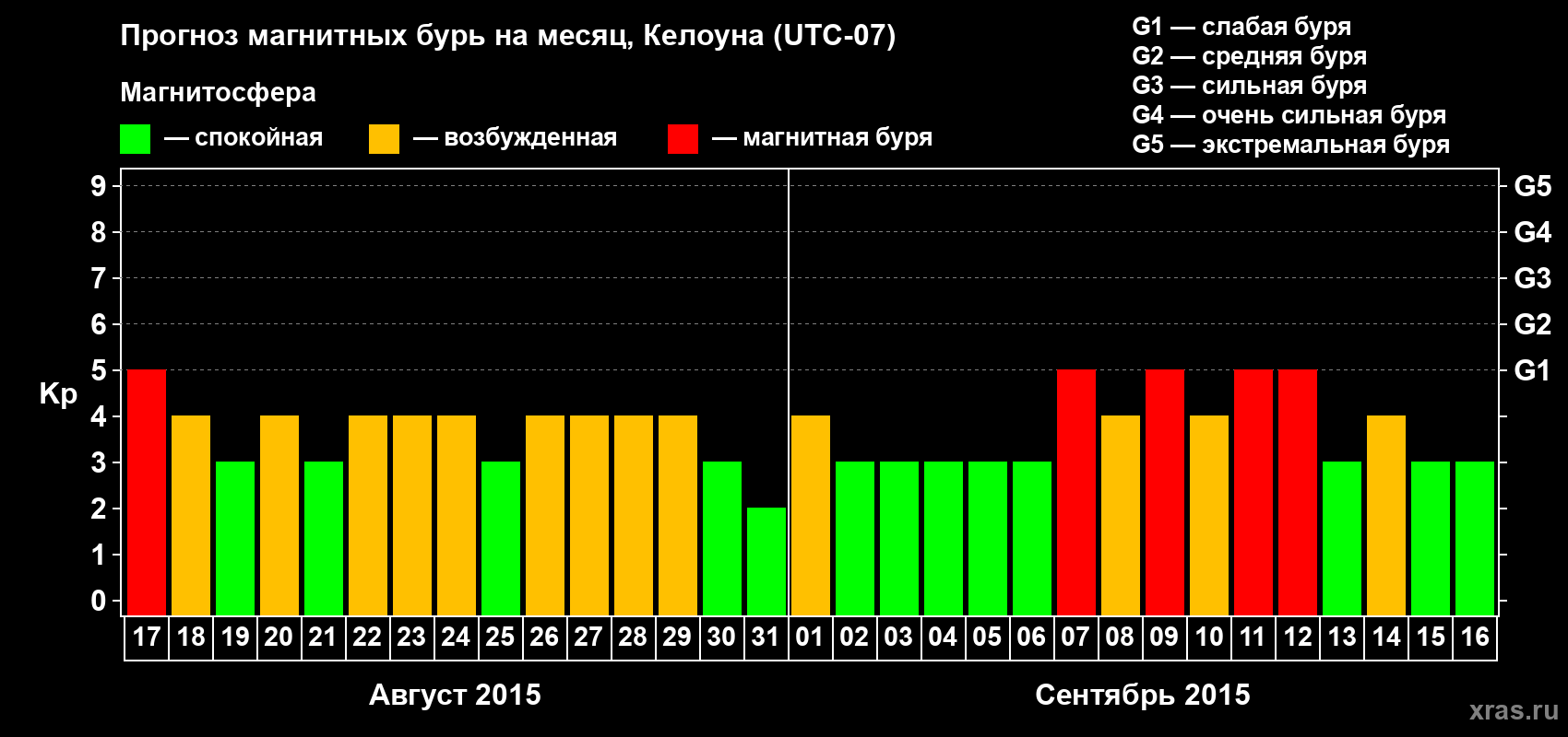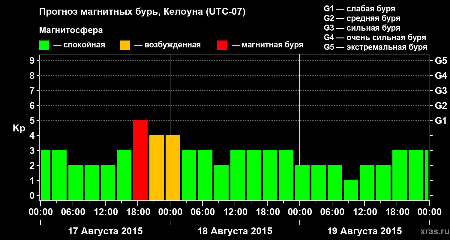 Прогноз магнитных бурь в Келоуне на 17 августа 2015 года