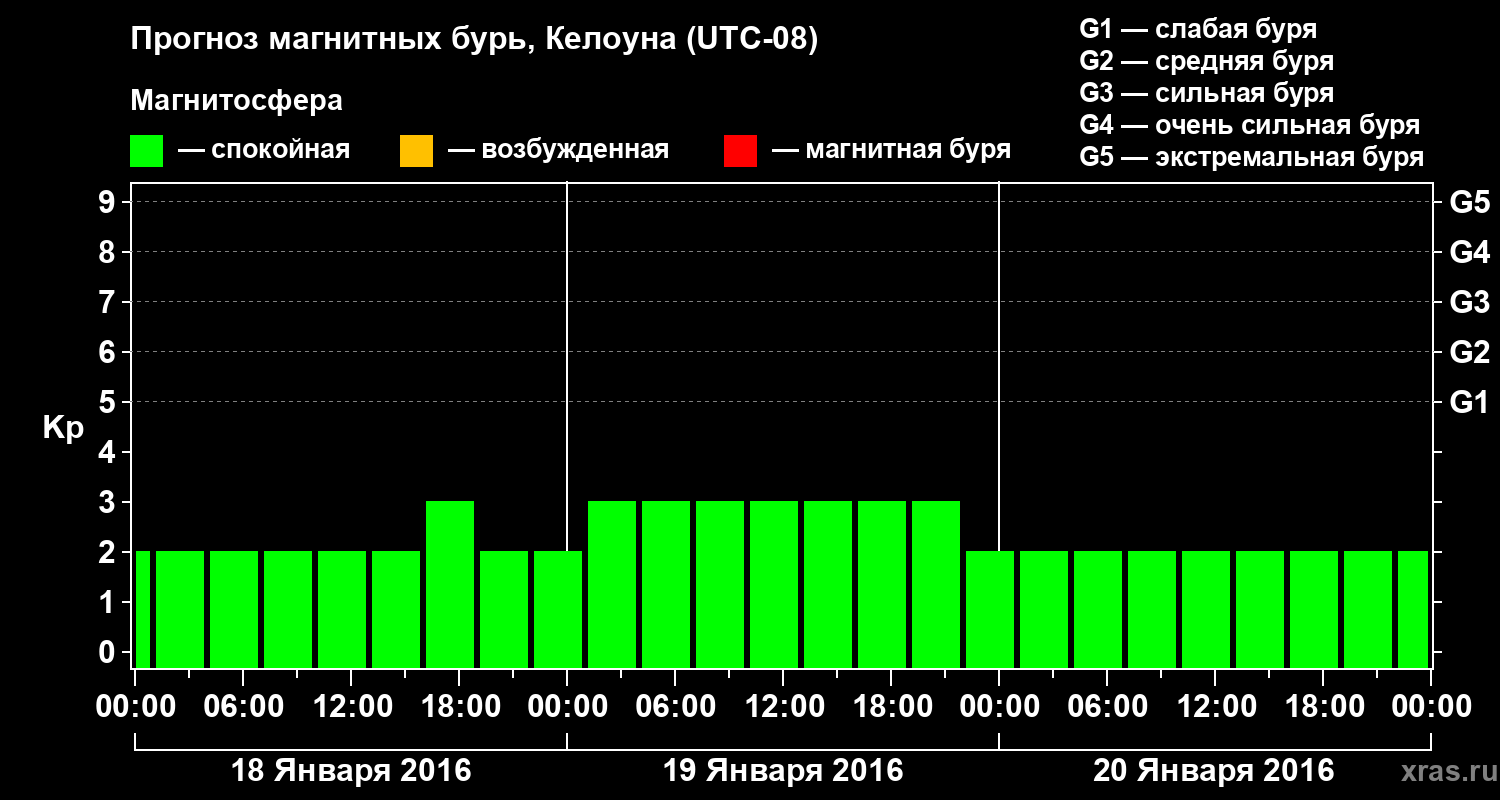 Прогноз магнитных бурь в Келоуне на 18 января 2016 года