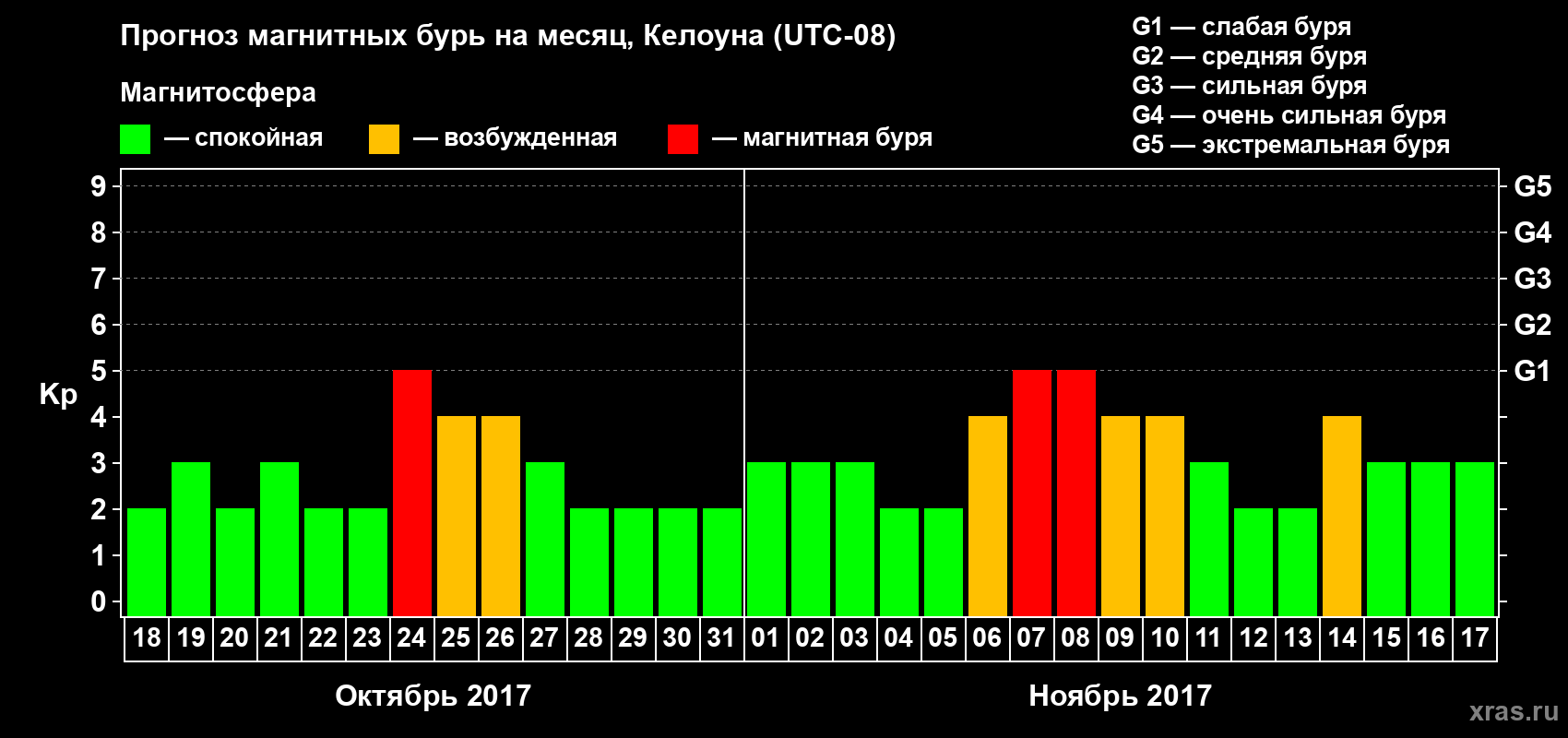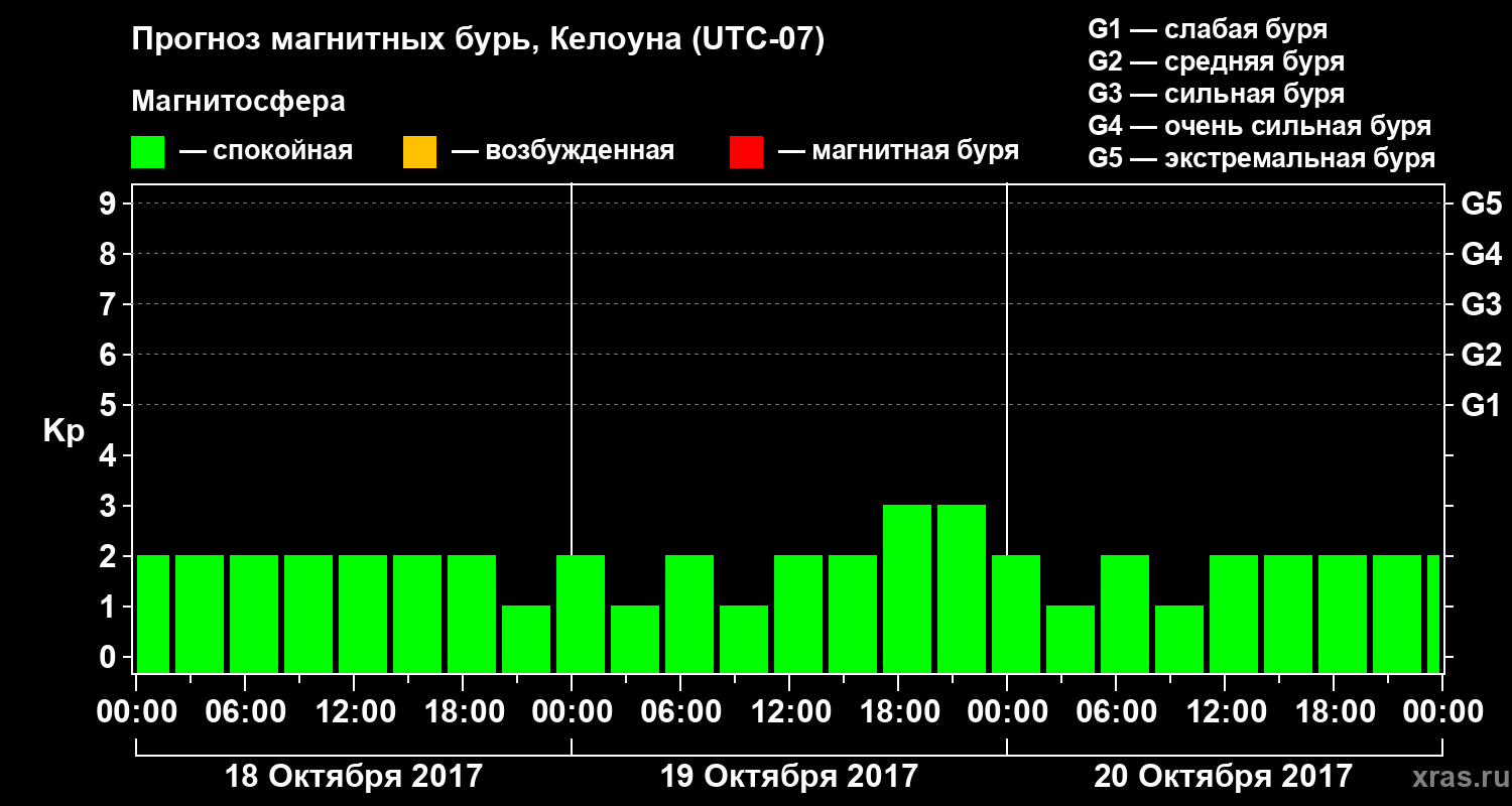 Прогноз магнитных бурь в Келоуне — 18 октября 2017 года