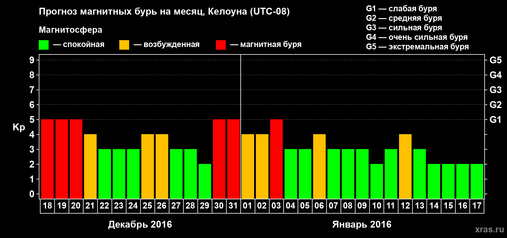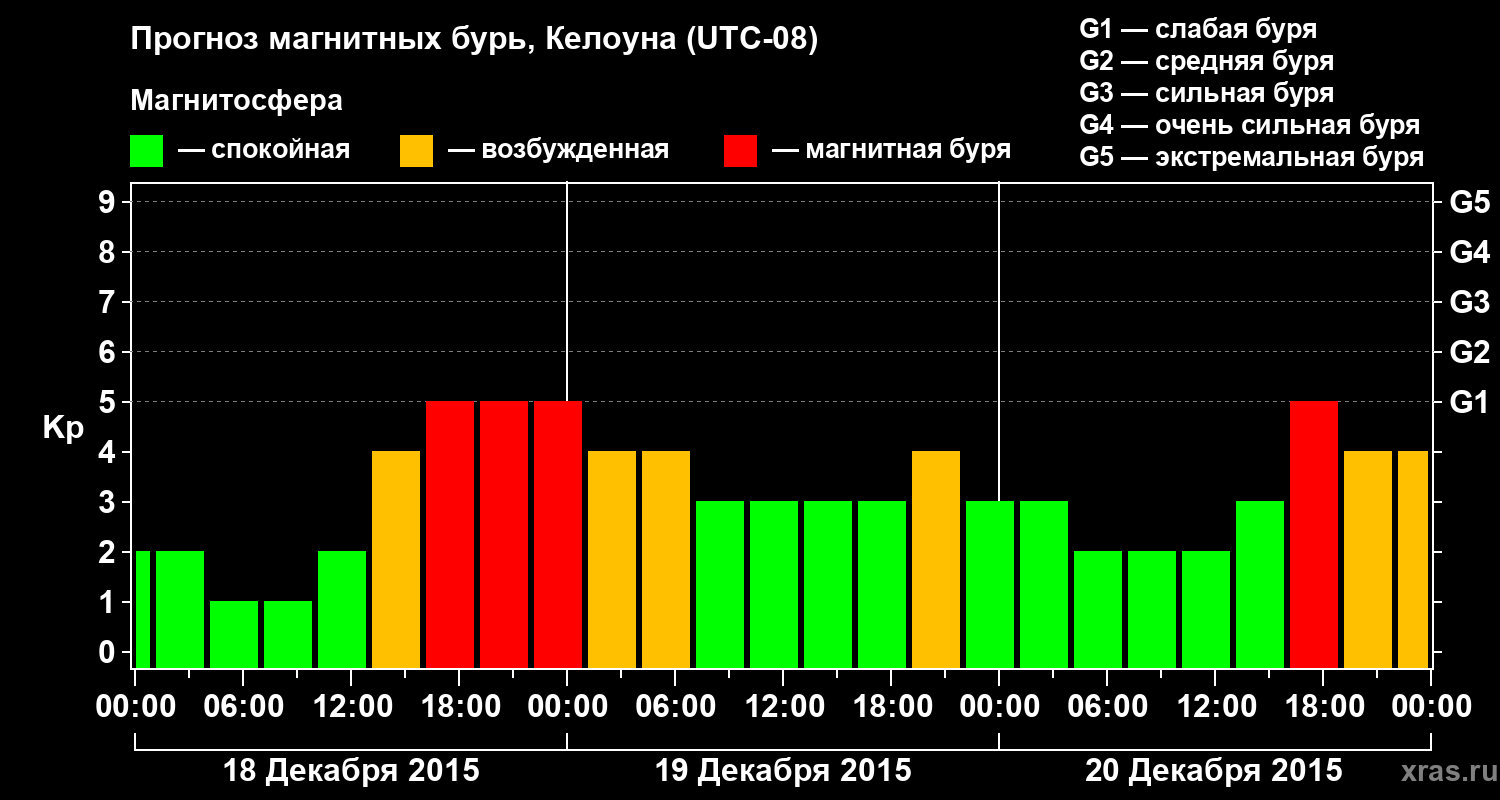 Прогноз магнитных бурь в Келоуне — 18 декабря 2015 года