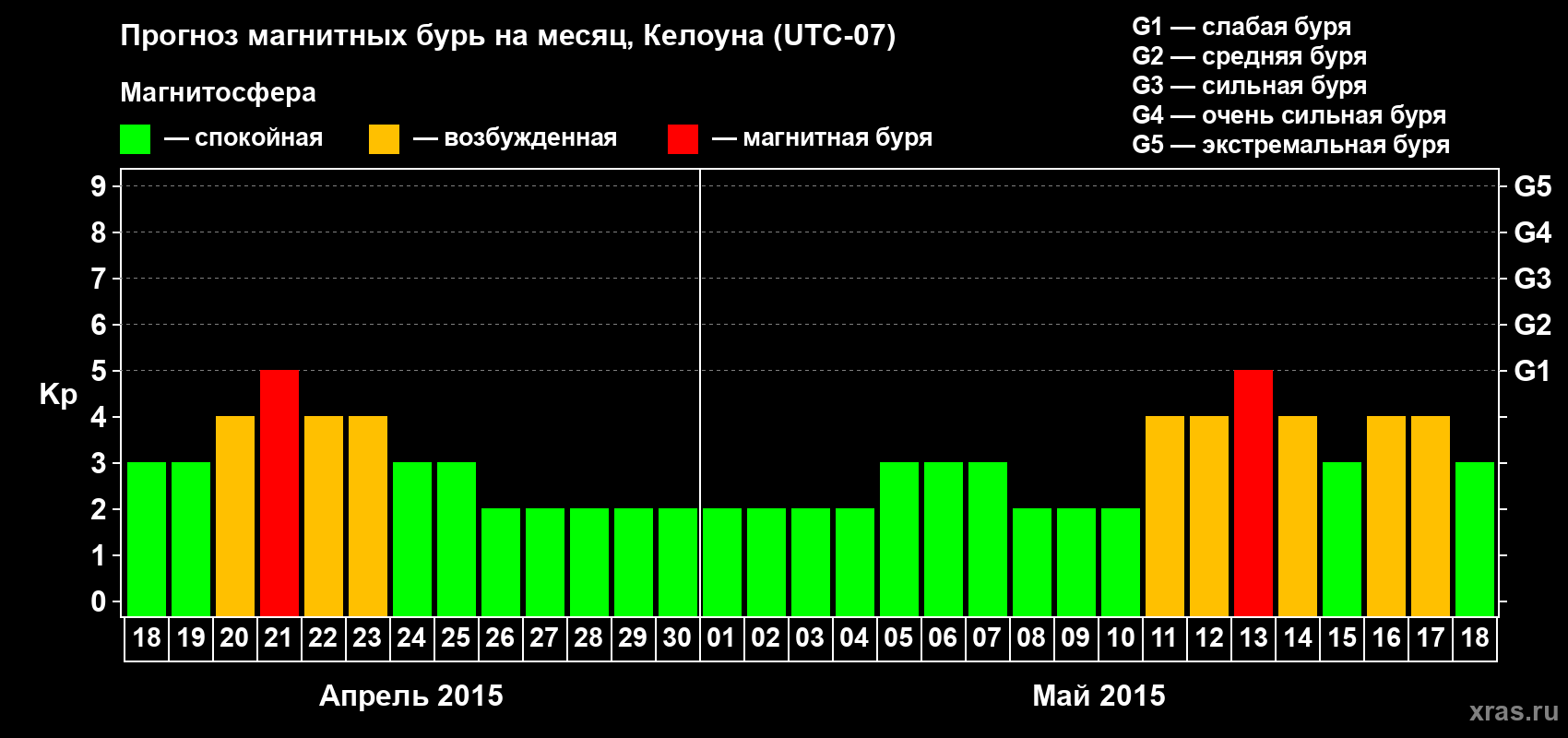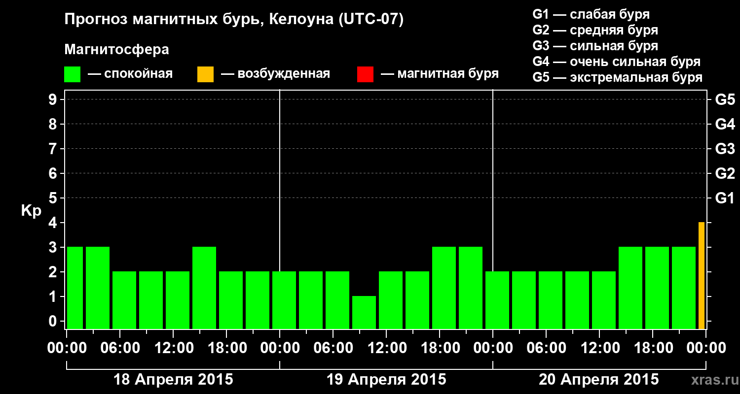 Прогноз магнитных бурь в Келоуне на 18 апреля 2015 года