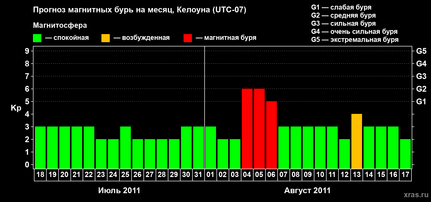 Прогноз магнитных бурь в Келоуне — 18 июля 2011 года