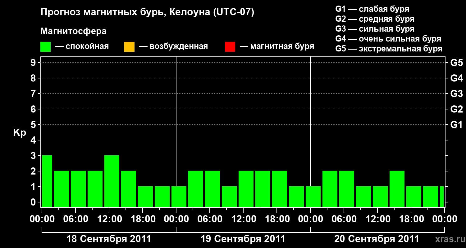 Прогноз магнитных бурь в Келоуне — 18 сентября 2011 года