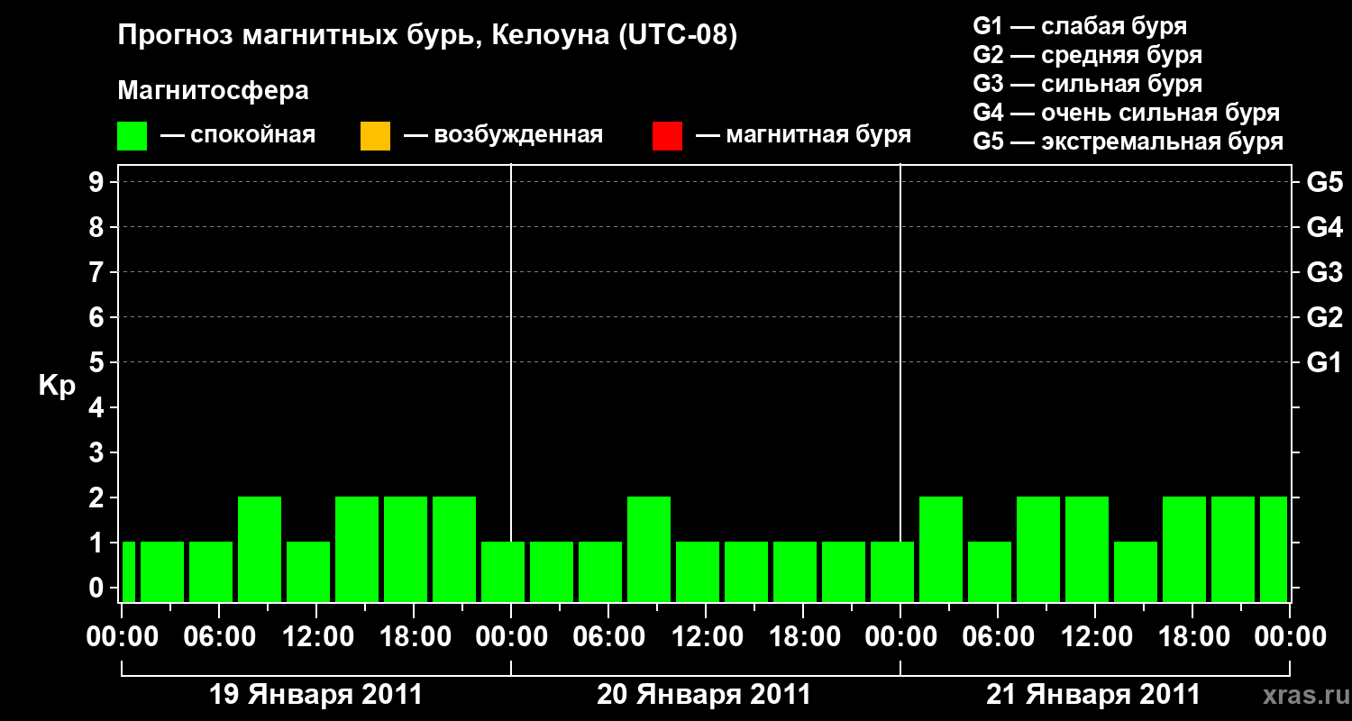 Прогноз магнитных бурь в Келоуне на 19 января 2011 года