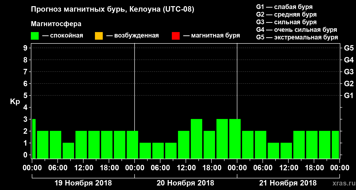 Прогноз магнитных бурь в Келоуне — 19 ноября 2018 года