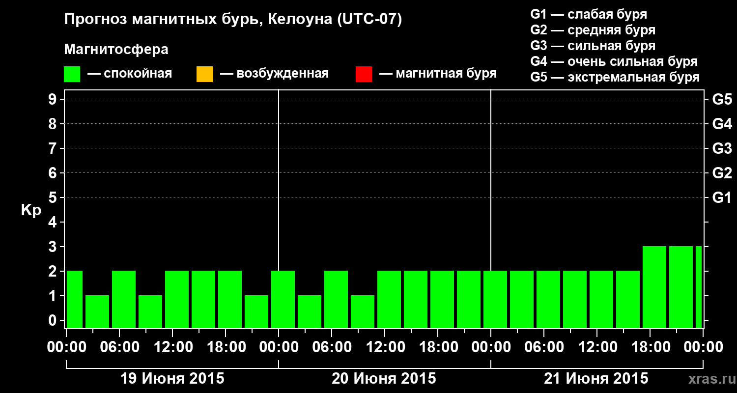 Прогноз магнитных бурь в Келоуне на 19 июня 2015 года