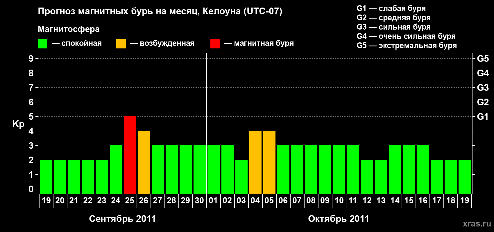 Прогноз магнитных бурь в Келоуне — 19 сентября 2011 года