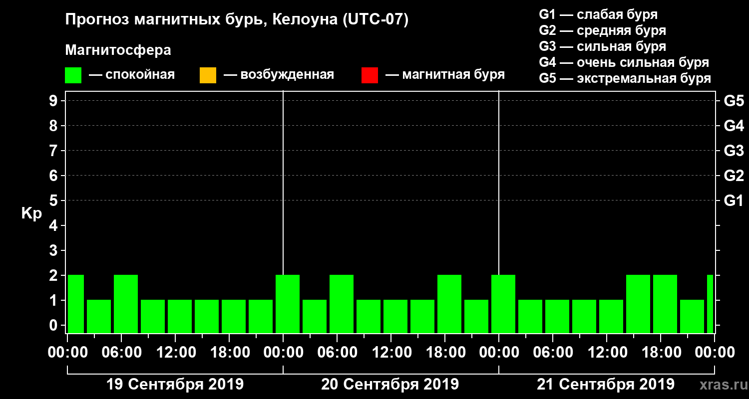 Прогноз магнитных бурь в Келоуне на 19 сентября 2019 года