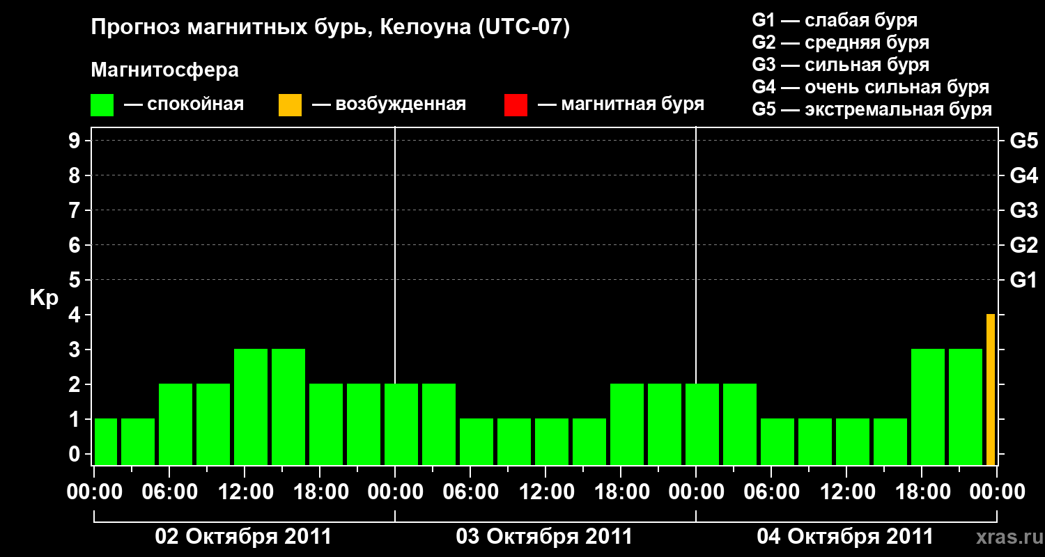 Прогноз магнитных бурь в Келоуне — 2 октября 2011 года