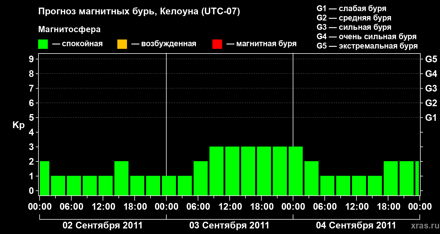 Прогноз магнитных бурь в Келоуне — 2 сентября 2011 года