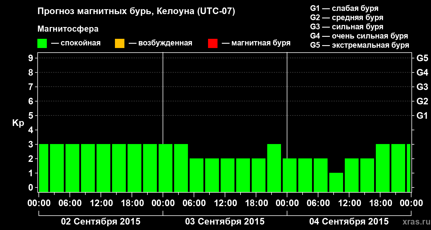Прогноз магнитных бурь в Келоуне на 2 сентября 2015 года