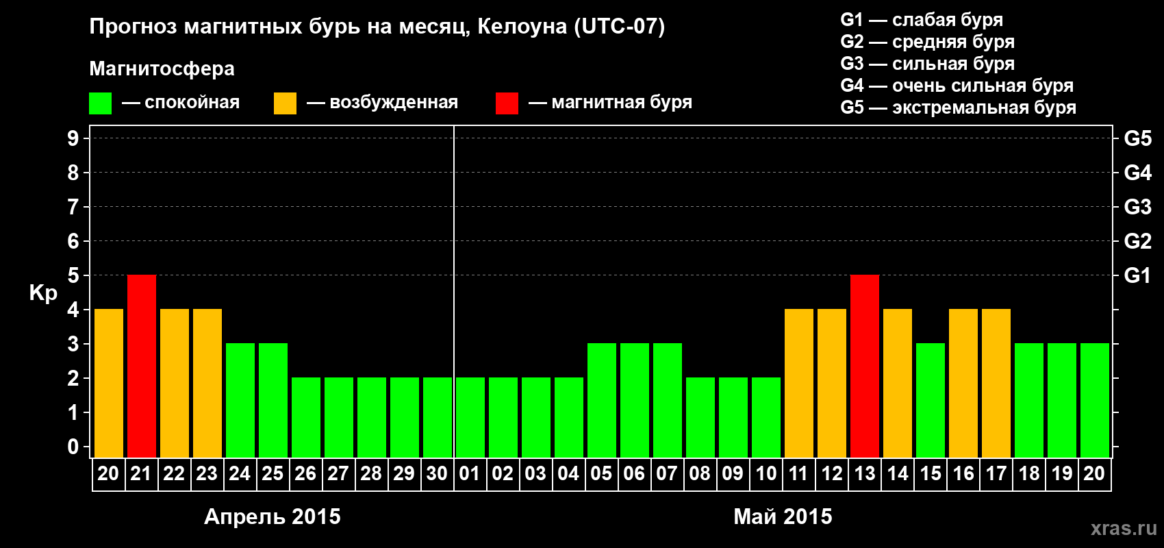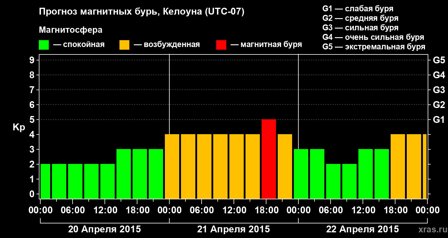 Прогноз магнитных бурь в Келоуне на 20 апреля 2015 года