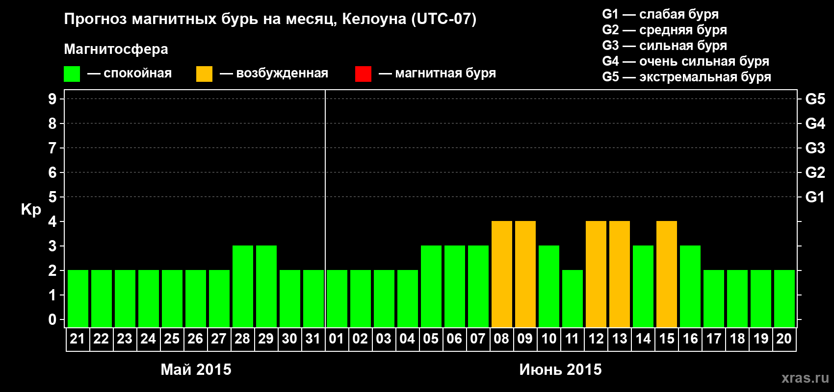 Прогноз магнитных бурь в Келоуне на 21 мая 2015 года