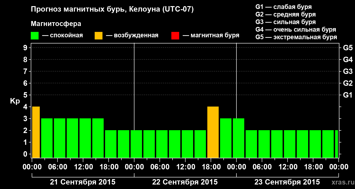 Прогноз магнитных бурь в Келоуне — 21 сентября 2015 года
